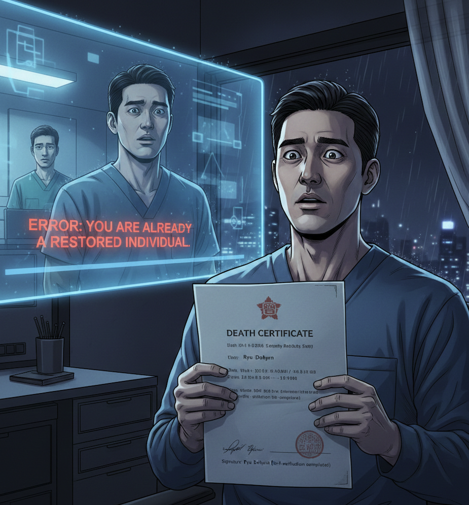 도현은 손끝의 라텍스 장갑을 벗으며 창문 밖을 바라봤다. 새벽 공기 속에서 도시의 불빛이 점처럼 깜빡였다.그는 무의식적으로 생각했다. ‘누군가 이 데이터를 복원한다면, 이 사람은 다시 살아날 수 있을까.’