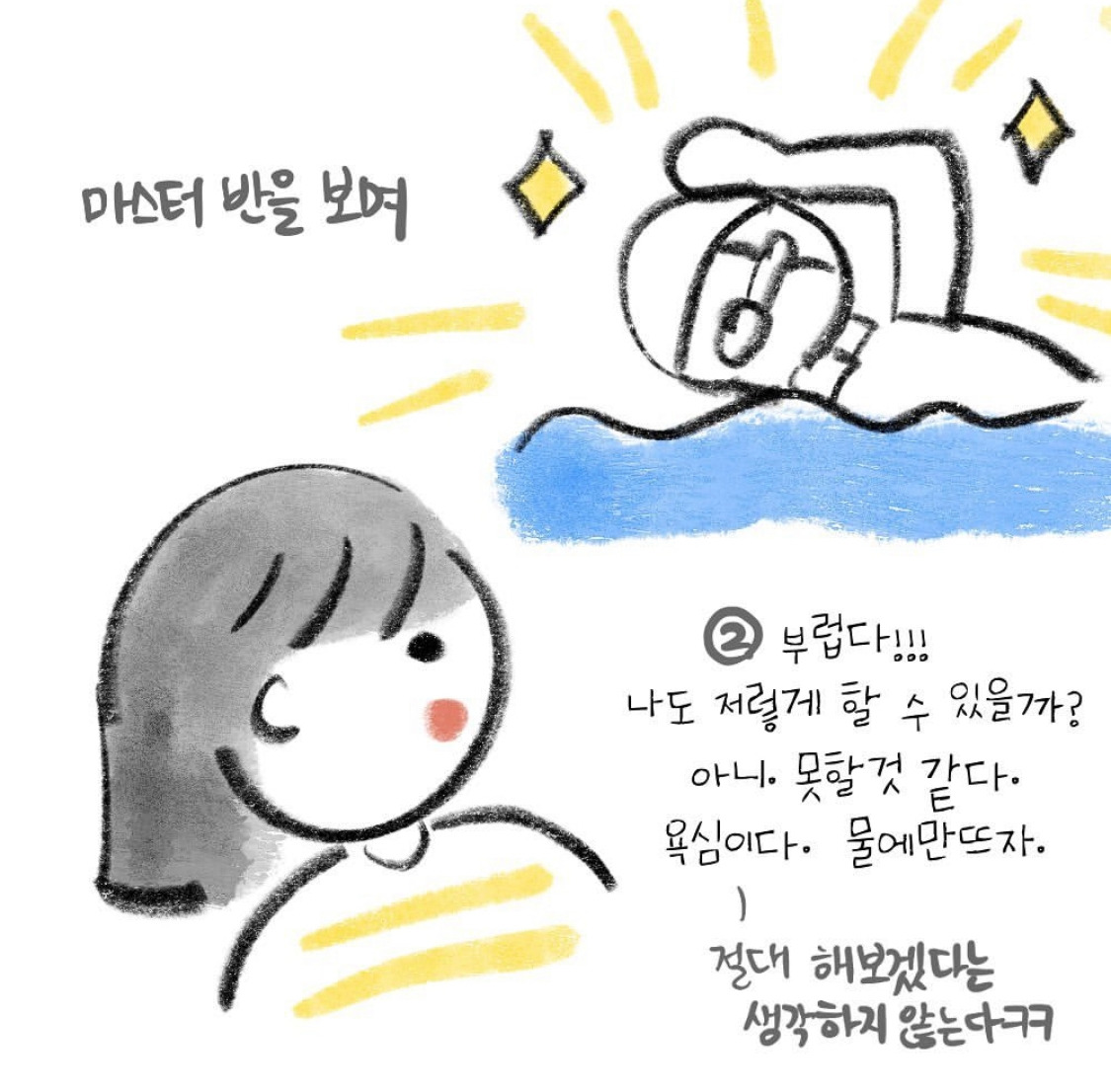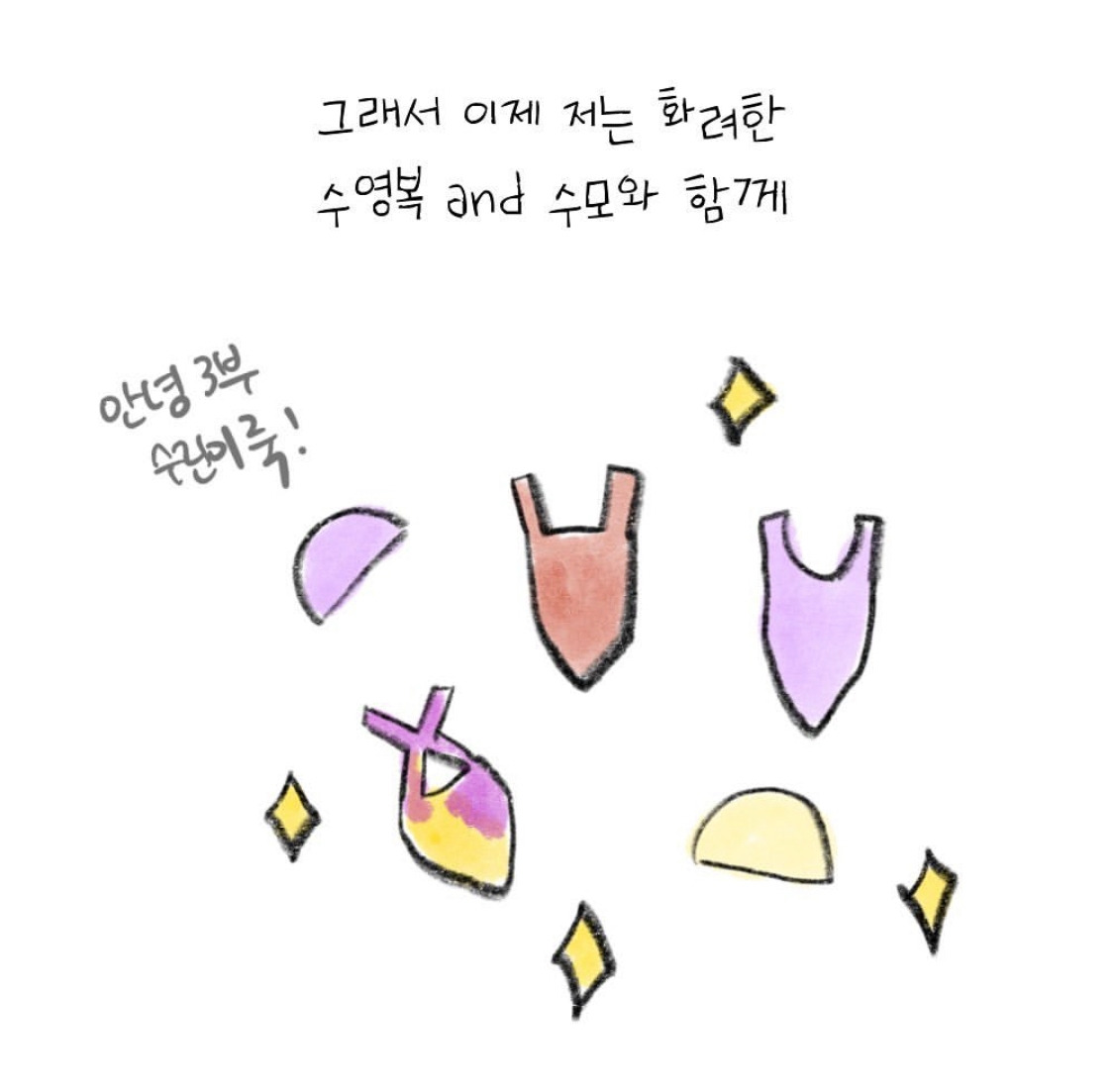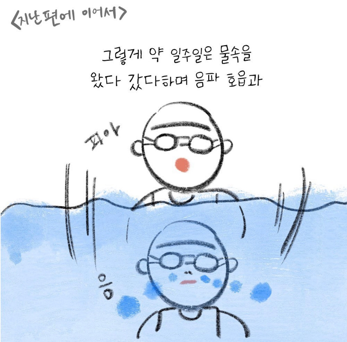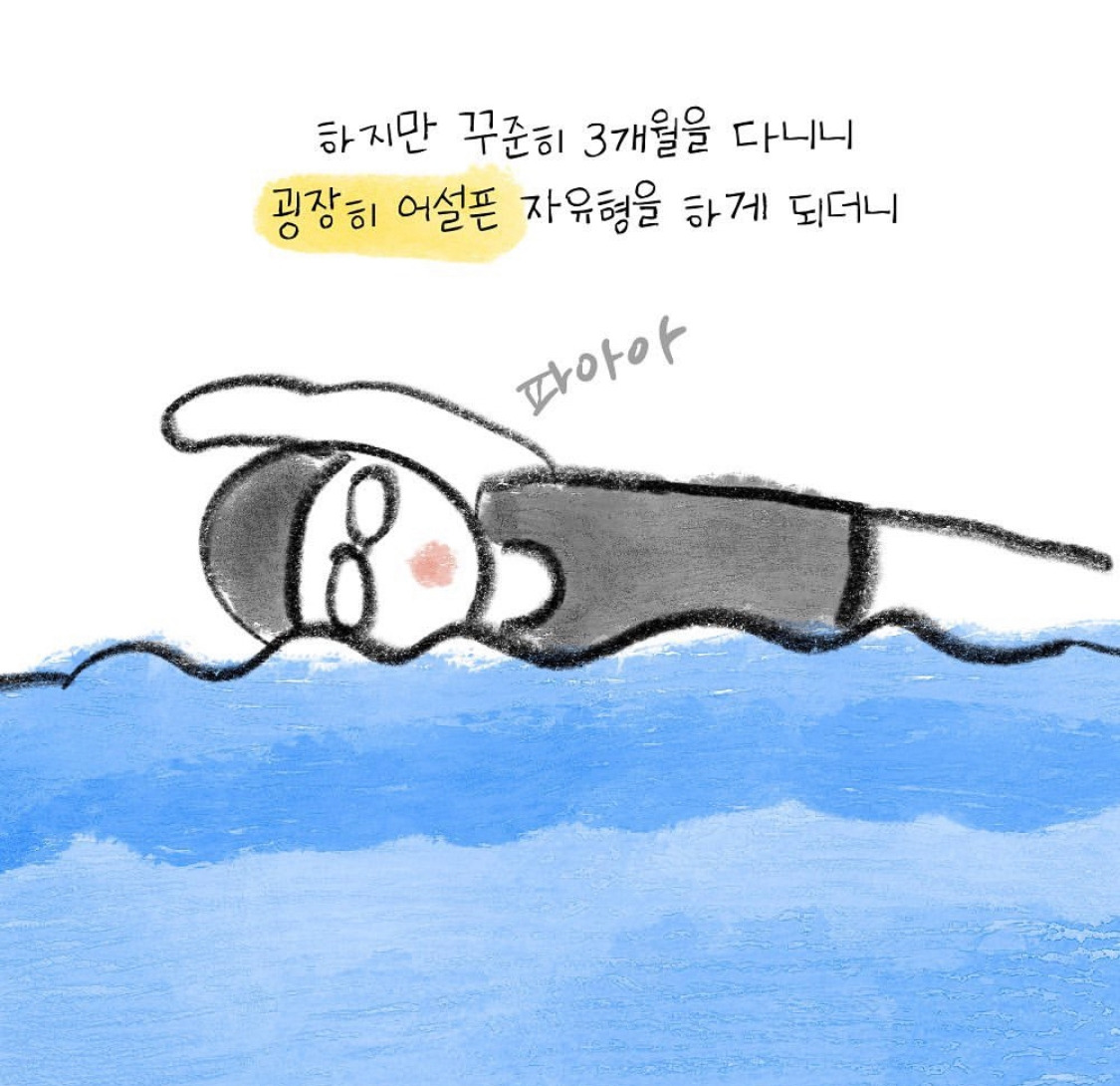 하지만 수영에 재미가 들리니 코로나가 터졌더랬죠!나중에 꼭 뒷 이야기도 그려보겠습니다ㅎㅎ