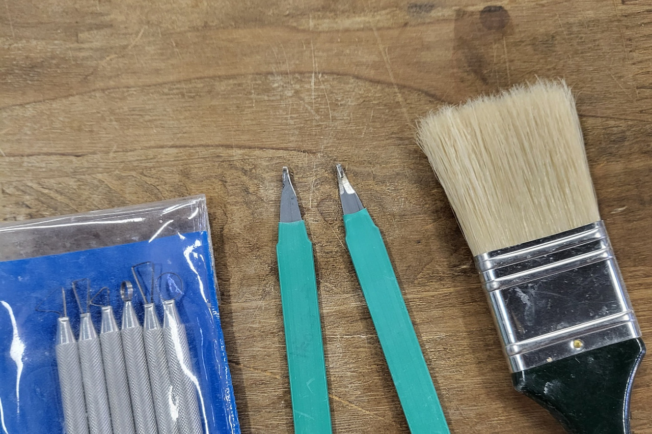 우선 초보이니 만큼 조각에 필요한 도구란 도구는 책상 위에 몽땅 늘어놓고 선생님을 기다렸다. 어떤 무늬를 새길지, 어떻게 새길지 배워야 했기 때문이다.