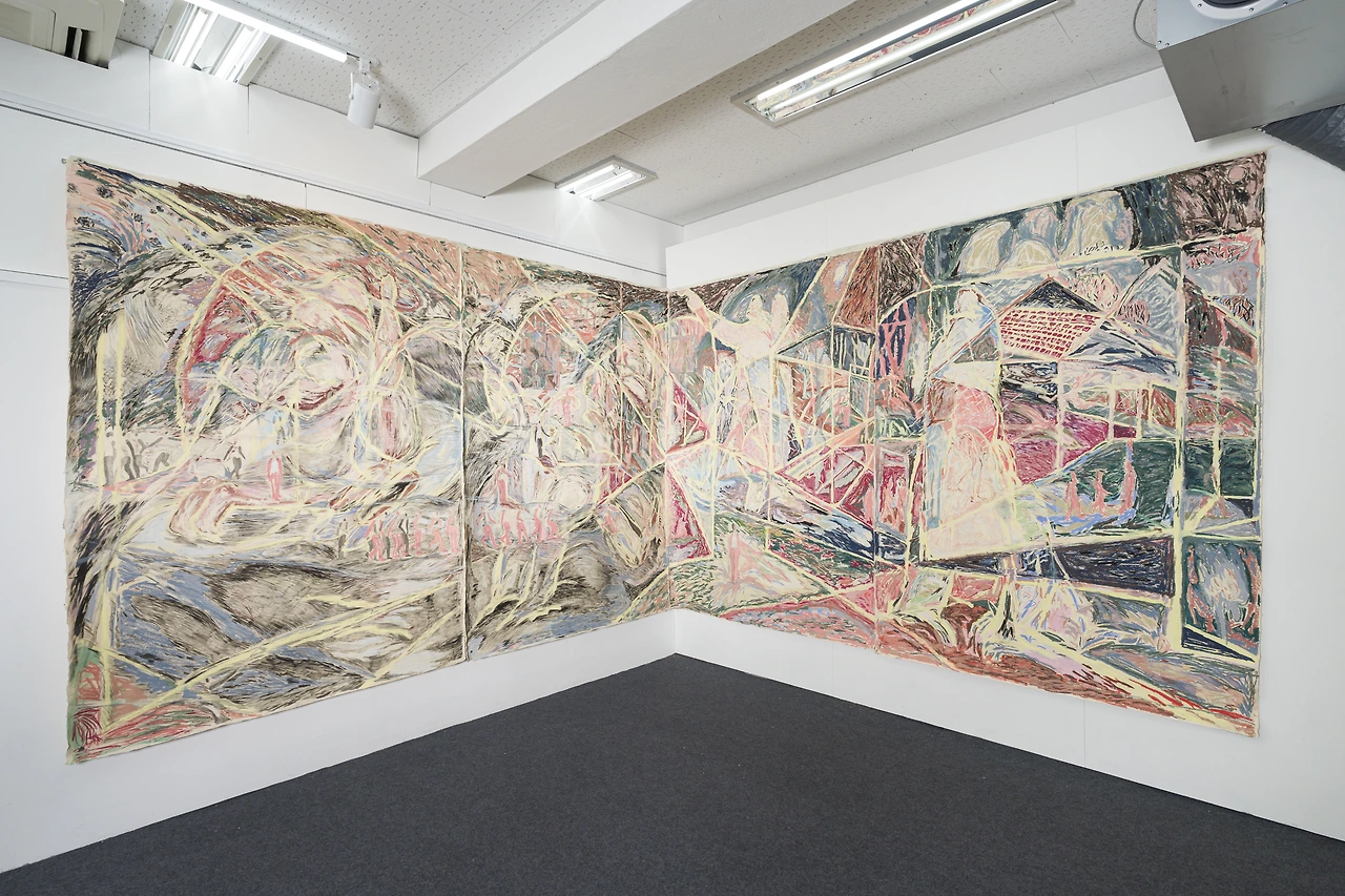 나는 기억의 모호함과 왜곡, 그리고 움직임이 만들어내는 서사에 주목한다. 현대는 기억을 저장으로 대체하며 단편화된 기억법을 만들어냈지만, 나는 기억 속 움직임과 흔적이 스스로 이야기를 만들어가는 과정을 탐구한다. 부동의 공간은 아니마적인 떨림과 동선을 통해 살아 움직이며, 사람들의 행위가 그리는 자국은 공간 안에서 새로운 이야기를 만든다. 움직임은 사방으로 팽창하고 수축하며 공간의 서사를 만들어낸다. 움직임을 시간의 층위로 쌓아가는 애니메이션적 접근을 회화에 접목하여 시간의 궤적을 공간의 확장성으로 표현한다. 나는 이를 인체의 움직임인 **크래오그라피(Choreography)**적 방법론으로 기록하며, 공간과 신체가 함께 그려내는 **바디스케이프(Bodyscape)**를 구축한다. 나는 인간의 움직임을 따라가며, 기억의 진화와 퇴보, 진실과 허구가 얽힌 가능성의 서사를 애니메이션과 회화로 뭉치고 펼쳐낸다.