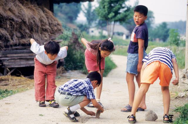 어릴 때는 그냥 친구들하고 학교 댕김서 즐겁게 놀기만 한 기억밖에 없어. 초등학교 때는 친구들하고 막 고무줄놀이도 허고, 바울 따먹기(비석치기)도 하고, 뺌 재기(뼘내기, 사기그릇 조각 같은 걸로 던져 뼘으로 거리를 재는 놀이) 허고, 그러고 막 저 동네 이 동네로 놀러 가고.