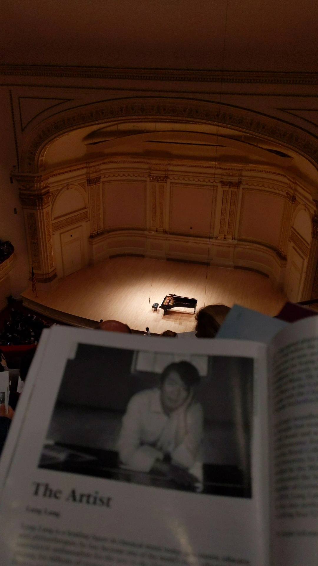 리오프닝 이후 처음 찾은 카네기홀은 북적였다. 블록을 돌아야 할 정도로 길게 줄이 늘어섰고, 백신 접종 여부와 티켓을 체크한 뒤 들어갈 수 있었다. 빨간 카펫이 깔린 계단을 4층이나 오르면, 예약한 발코니 석이었다. 일행이 "모 심어놓은 것 같다"고 할 정도로, 안 그래도 가파르고 좁은 카네기홀의 관객석이 가득 들어찼다. 오늘은 이역만리 먼 타향을 사는 중국 관객들이 유독 많이 눈에 띄었다