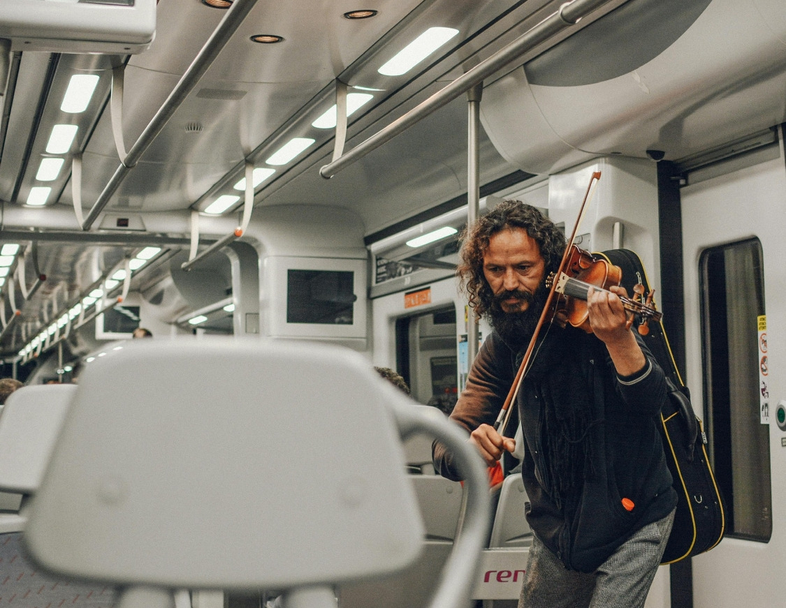 길거리에서 노숙자가 사연 깊게 연주하는 모습조차