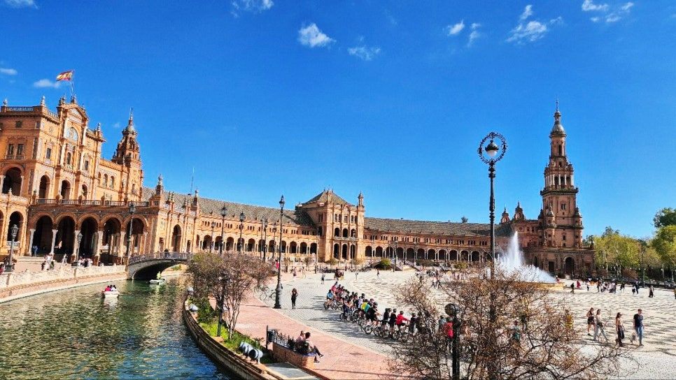 세비아 대성당을 나와 아름답다는 스페인 광장으로 이동을 했다. 과달키비르 강변을 지나 중심가를 거쳐 15분~20분 정도 걸어서 지나게 되었다. 길은 평지길로 이어져 있어 걸어가는 것은 별 무리가 없었다. 길가에는 커다란 가로수가 줄지어 서있었고, 차도에는 자동차들이 바쁘게 움직였다. 스페인 광장에 도착하여 가이드 해설을 들은 후 이곳에서 제법 긴 시간을 자유 관람을 했다.