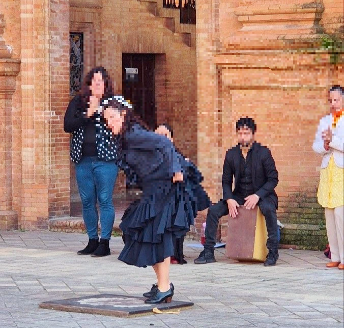 자유투어 중, 광장 건물을 걷다가 마침 그곳에서 야외 공연 중인 집시 춤 '플라멩코'를 봤다.