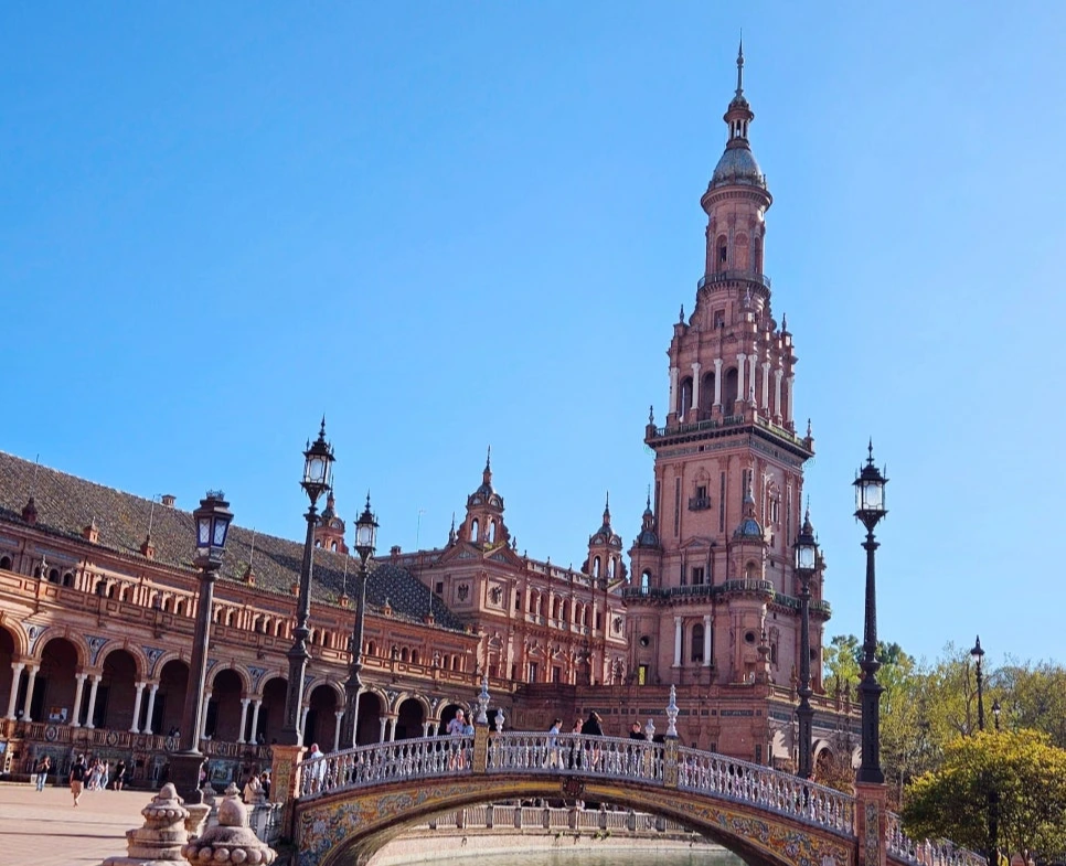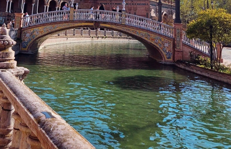 이 멋진 건축물은 세비아 건축가 아니발 곤살레스의 작품이라고 한다. 광장건물 중 하늘을 바라보며 높이 솟은 탑이 인상적이었다. 얼마 전 결혼한 조카가 이곳에 신혼여행을 왔다. 그때 스페인광장을 배경으로 찍은 사진을 보고 나는 정말 멋있다고 감탄을 했었다. 정말 현장에 와 보니 멋진 광장이었다. 지구상에서 가장 아름다운 광장인 듯 아름다웠다.