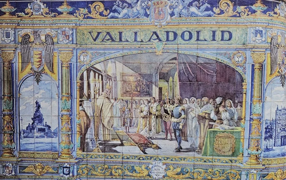 카디스의 해변, 그곳에 갈 수는 없지만 붉게 타오르는 태양, 상상만으로도 멋있을 것 같다는 생각이 들었다. 며칠 전 발렌시아에서 봤던 아침 태양이 갑자기 뇌를 스쳤다. 다시 걸음을 옮기는 중 바야돌리드 도시(Valladolid) 회벽 벤치에는 스페인의 영웅 이사벨여왕과 페르난도 결혼식 장면이 타일에 나타나있었다.