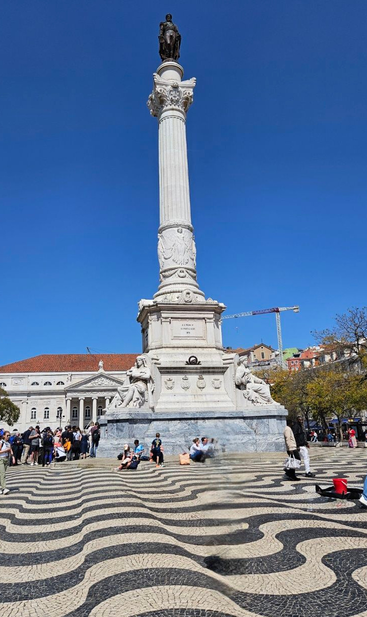 식사를 마친 후 중심가인 호시우 광장으로 갔다. 광장 바닥은 파도 물결처럼 타일이 깔려있었다. 좀 더 먼 거리에서 광장을 바라보면 마치 바다 물결이 일렁이는 것 같은 착시 현상이 일어났다. 검은색과 흰색으로 깔린 물결 형상의 바닥은 리스본 주민들이 직접 자갈을 들어다 만들었다고 한다. 정말 광장 바닥이 특이했다. 쌀쌀한 날씨에도 광장에는 지나가는 여행객들과 휴식을 즐기는 시민이 보였다.