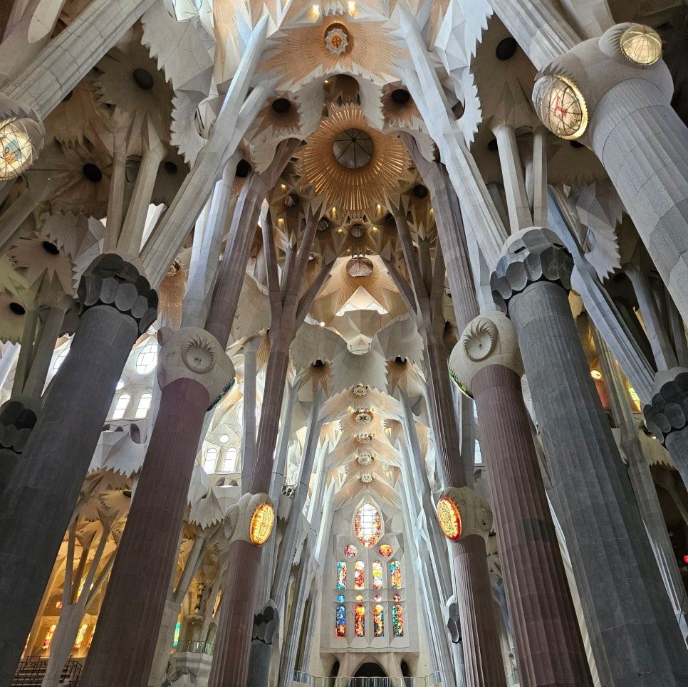 아직 가우디 성당은 건축이 완공된 상태가 아니었다. 현재도(2025년) 계속 공사 중인 높은 탑들을 볼 수 있었다. 완공이 되는 날은 또 어떤 모습으로 다가올지 궁금해졌다. 가우디 성당을 보며 그의 남다른 상상력이 놀라웠다. 현대 AI 시대 우리가 상상하지 못했던 일들을 눈앞에 마주하듯, 이곳 사그라다 파밀리아 성당도 그 당시 사람들에게는 상상을 초월한 작품이 아니었을까는 생각이 들었다.