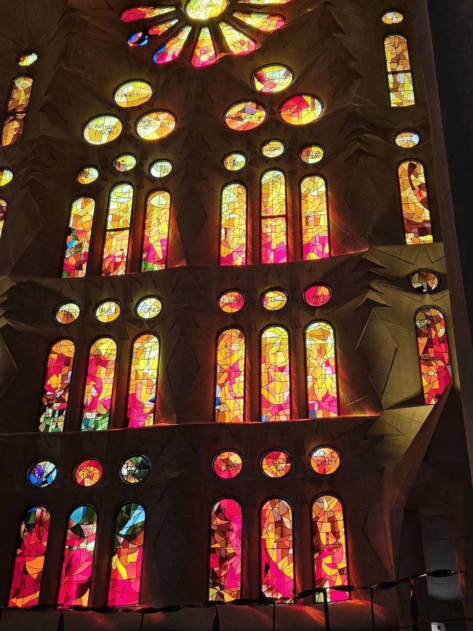 천장 위로 고개를 들자 커다란 해바라기가 눈에 띄었고, 특히 나무 가지가 높은 천장을 받치고 있는 내부 모습이 신비로웠다. 가지 사이로 커다란 잎사귀가 조각되어 달려 있었고, 나무들이 촘촘히 서 있는 듯한 모습은 여태껏 보아왔던 성당과는 분위기가 확연히 달랐다. 마치 식물이 살아서 숨을 쉬고 있는 착각에 빠졌다. 마치 숲을 성당 내부에 옮겨 놓은 듯한 분위기를 바라보다 문득, 인간이 만든 세속의 세계보다 자연 속에서 평화와 기쁨을 찾기를 바랐던 가우디의 마음이 조심스럽게 전해지는 듯했다.