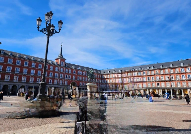 광장에는 펠리페 3세 (1598-1621) 기마상이 보였다. 마요르 광장 건설을 명령한 그는 지금도 광장 중앙에 자리하고 있었다. 이곳은 현재의 광장 이전부터 사람들이 모이던 곳이었고, 어느 시기부터는 종교재판이라는 살벌한 형벌이 공개적으로 열리기도 했던 광장 중 하나였다. 이때 종교재판은 재산 몰수. 이단이라는 낙인, 화형 등을 통해 행해졌다고 한다.