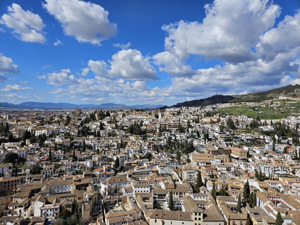 궁전과 마주하고 있는 저곳에서 이곳을 바라보면 궁전은 어떤 모습일까. 는 생각을 잠시해 본다. 빽빽한 집들 사이에 높이 솟은 가톨릭 성당 건축물이 우뚝 서있는 모습도 눈에 들어왔다. 파란 하늘엔 흰 구름이 제 멋대로 모양을 내었다가 흩어지곤 했다. 옛 무어인 병사가 여기서 방어를 했던 곳, 때론 침입자를 발견하기도 했을 것이고, 어쩌다 무어왕들이 탑 위에 올라 사방을 둘러봤을 법한 상상을 해 본다.