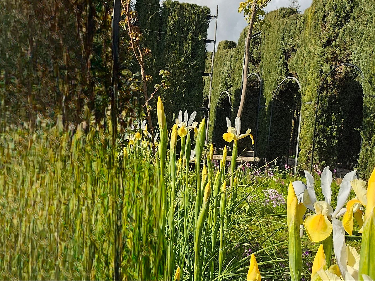 장소를 옮겨, 아세키아 안뜰에 있던 헤네랄리페 정원으로 갔다. 여름, 한 더위를 식히기 위해 만든 별궁이었다. 멀리서 보이던 얼음산에서 눈이 녹아 마침내 여기까지 흘러 들어오는 물이라고 했다. 이곳은 유명한 프란시스코 타레가 의 기타곡 <알함브라의 추억>이 떠 오르는 궁전의 분수대가 있는 곳이었다. 지금도 길게 뻗은 수로와 양쪽 분수에서 줄지어 길게 솟아오르는 물방울은 춤을 추었다. 물의 요정이 수정구슬로 변한 듯, 솟아오르다 떨어지는 모습은 나의 시선을 끌었다. 아름다웠다. 이때 떨어지는 물소리는 정원을 가득 채웠다.