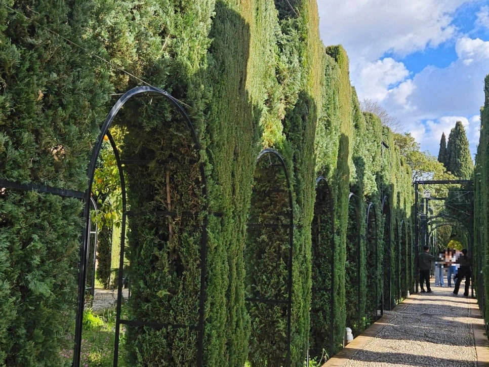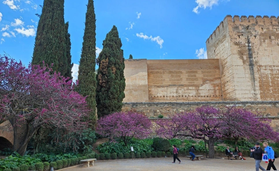 궁전 안 뒤편을 걷고 있던 중 초록 사이프러스는 하늘을 향해 뻗어 있고, 봄을 알리는 보라색 꽃이 나를 반겼다. 자세히 보니 보랏색 봉우리가 몽글몽글 달려있었다. 기다림에 멍이 든 듯한 짙은 보라색은 마치 무어인들의 아픔을 조용히 전하는 듯했다. 어느 날 흔적 없이 사라져 버린 옛 주인이 그리운 듯, 그들이 떠난 자리에 계절의 부름은 잘 따르고 있었다.