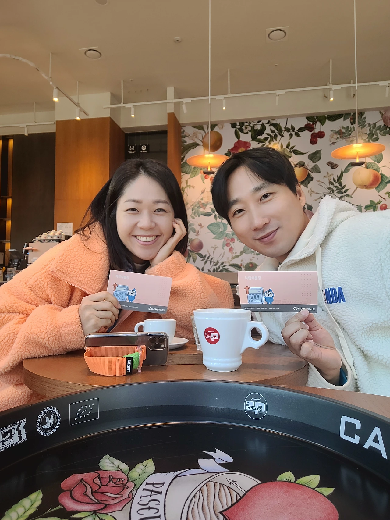 커플적금통장 개설하고 커피숍에서 찍은 셀카 한 장딱 우리답다.