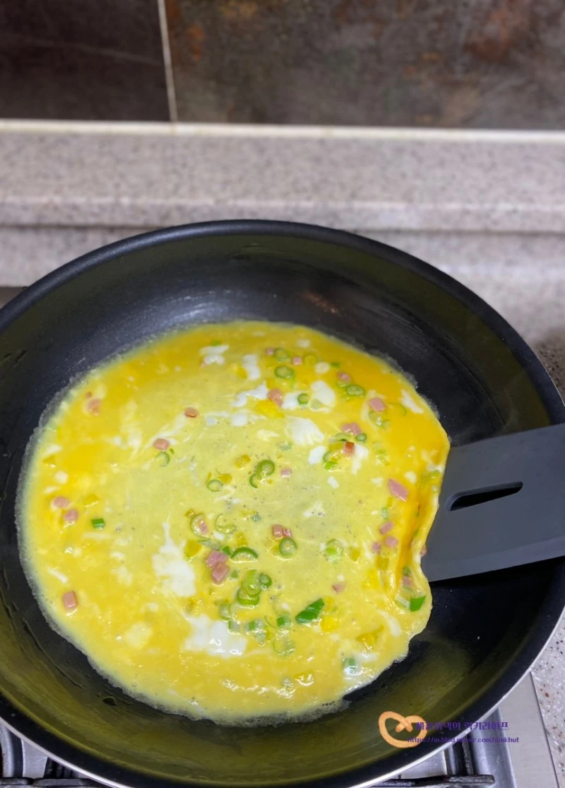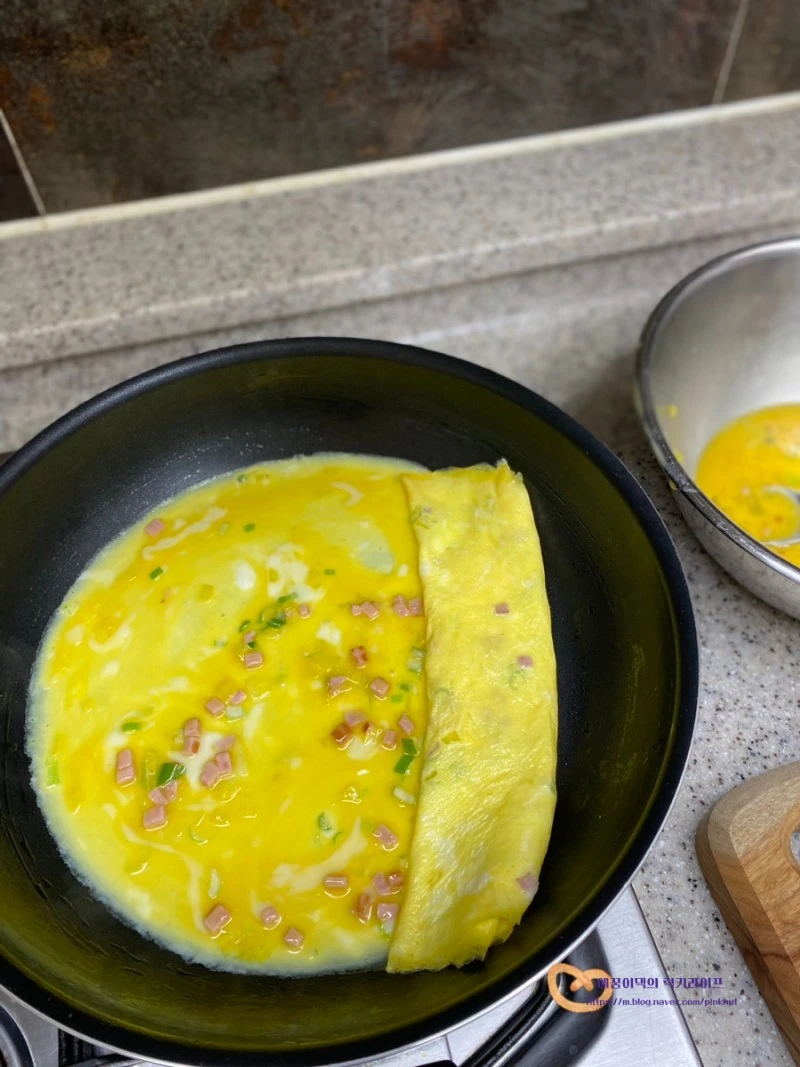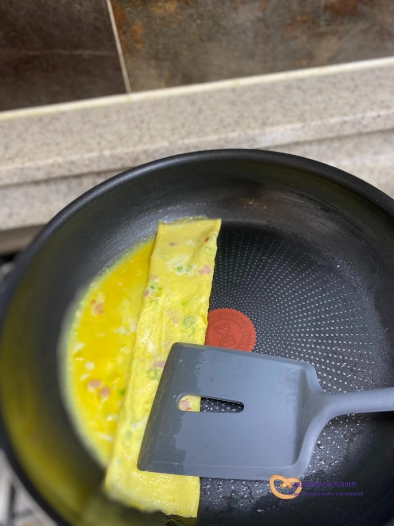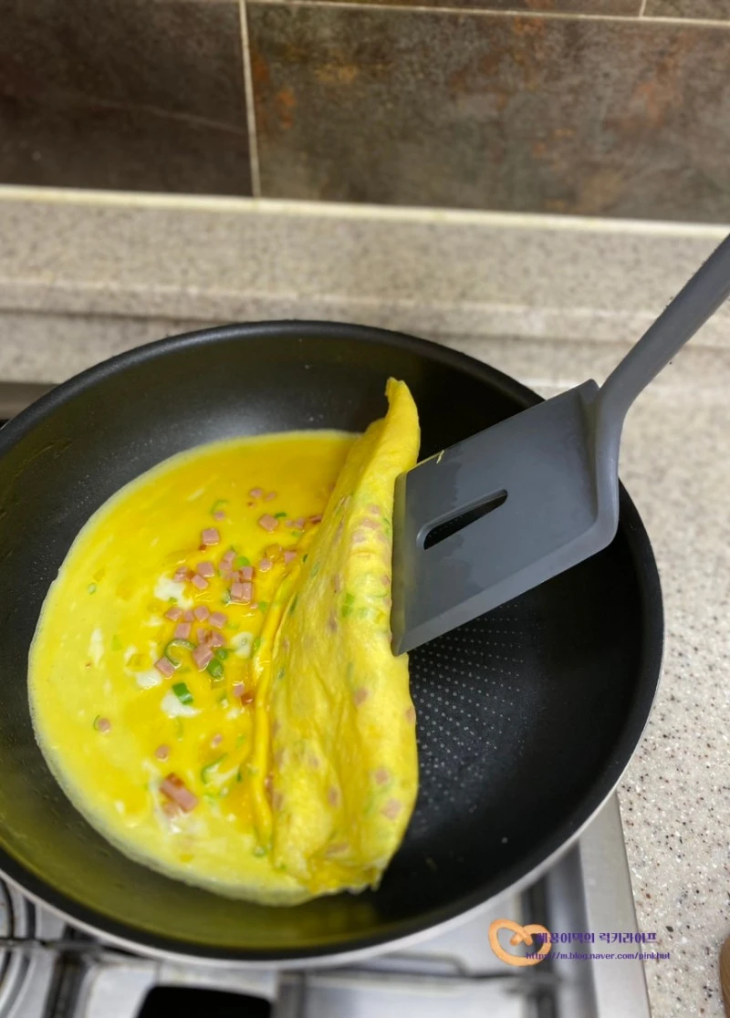 빈 공간에 다시 계란물을 부어 말아주는 과정을 반복해 줍니다