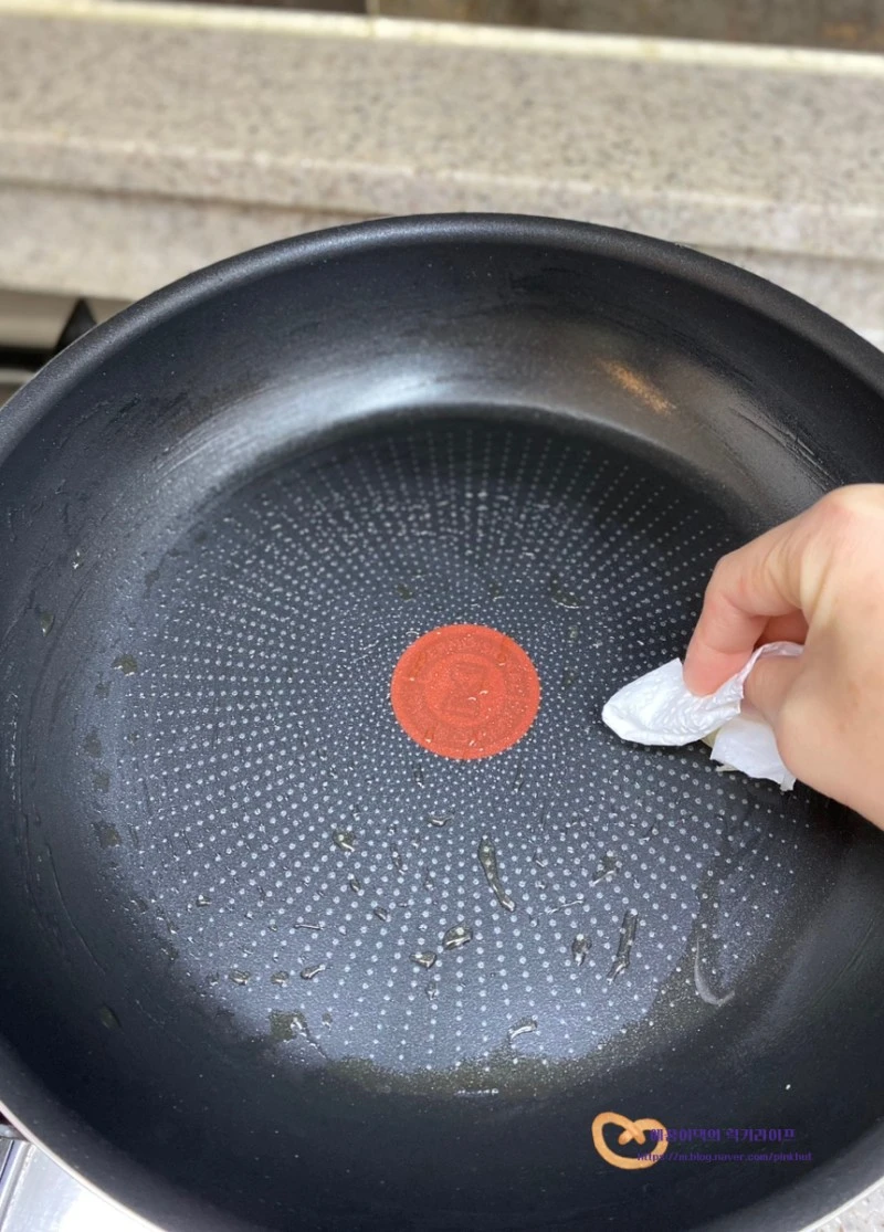 식용유를 두른 팬을 키친타올로 살짝 닦아내어