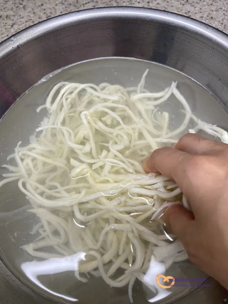 볼에 진미채와 물을 담아 가볍게 헹궈주고