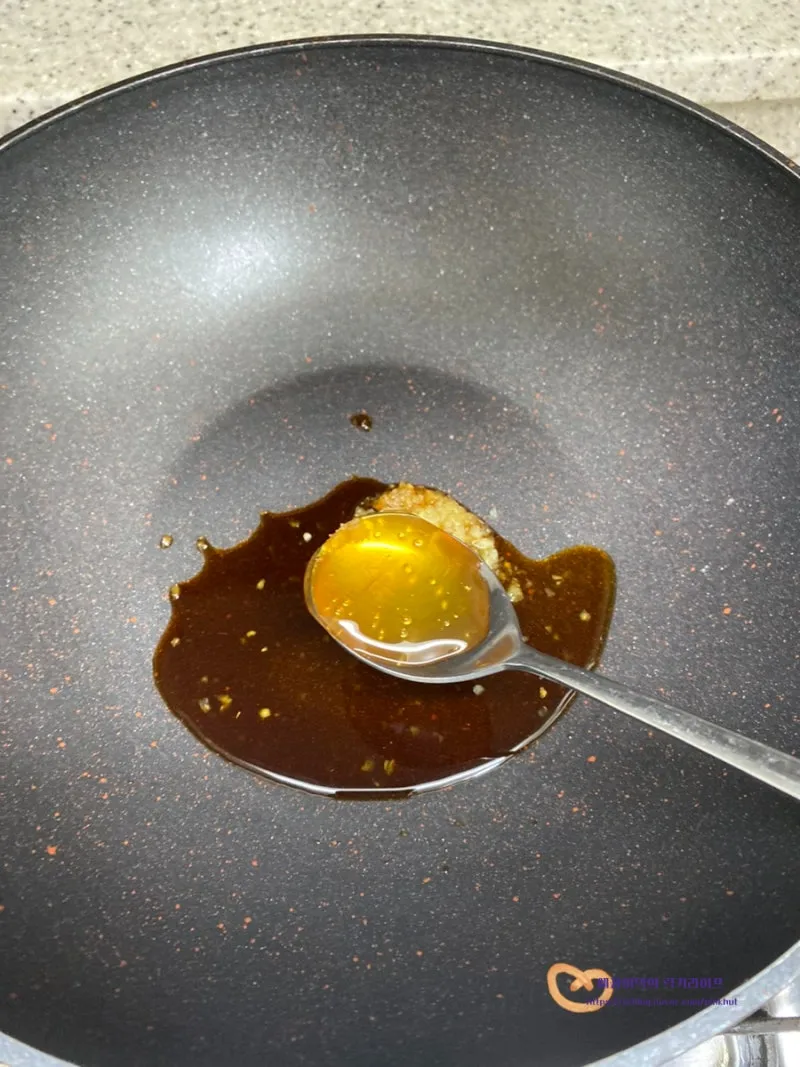팬에 다진마늘 1T, 맛술 1T, 간장 3T,