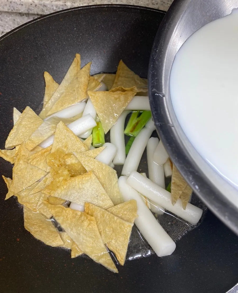 크림 떡볶이인 만큼 우유와 물이