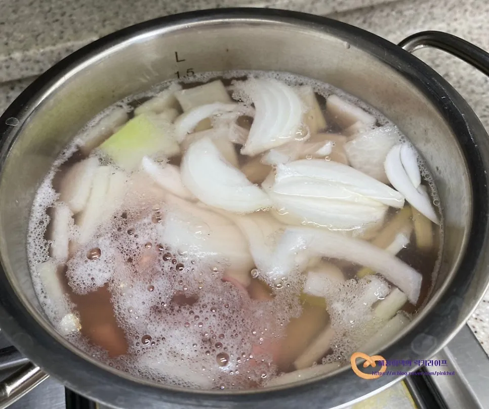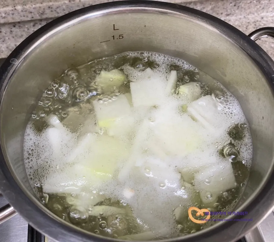 보글보글 끓어오르고 무가 투명하게