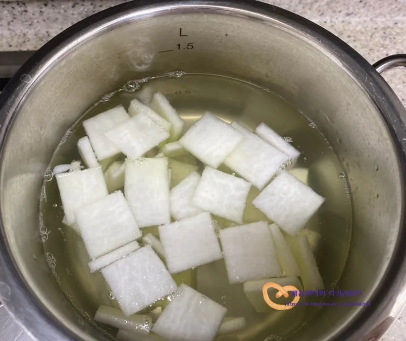 냄비에 멸치육수와 무를 넣고