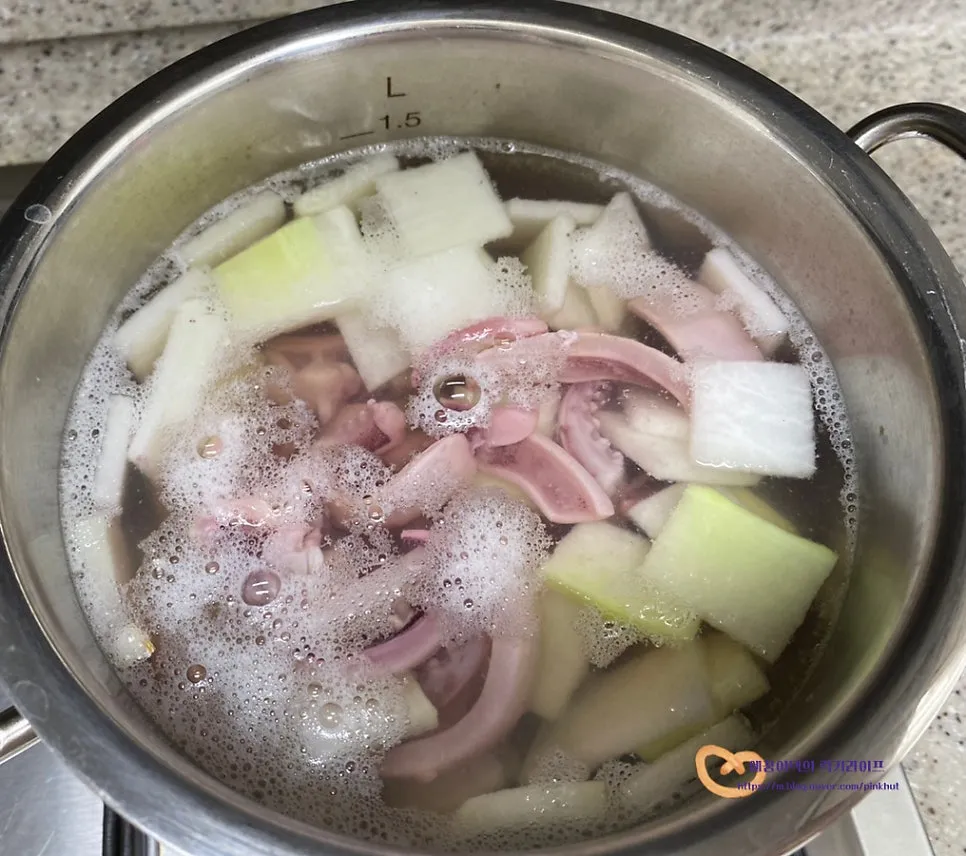 오징어와 무를 넣고
