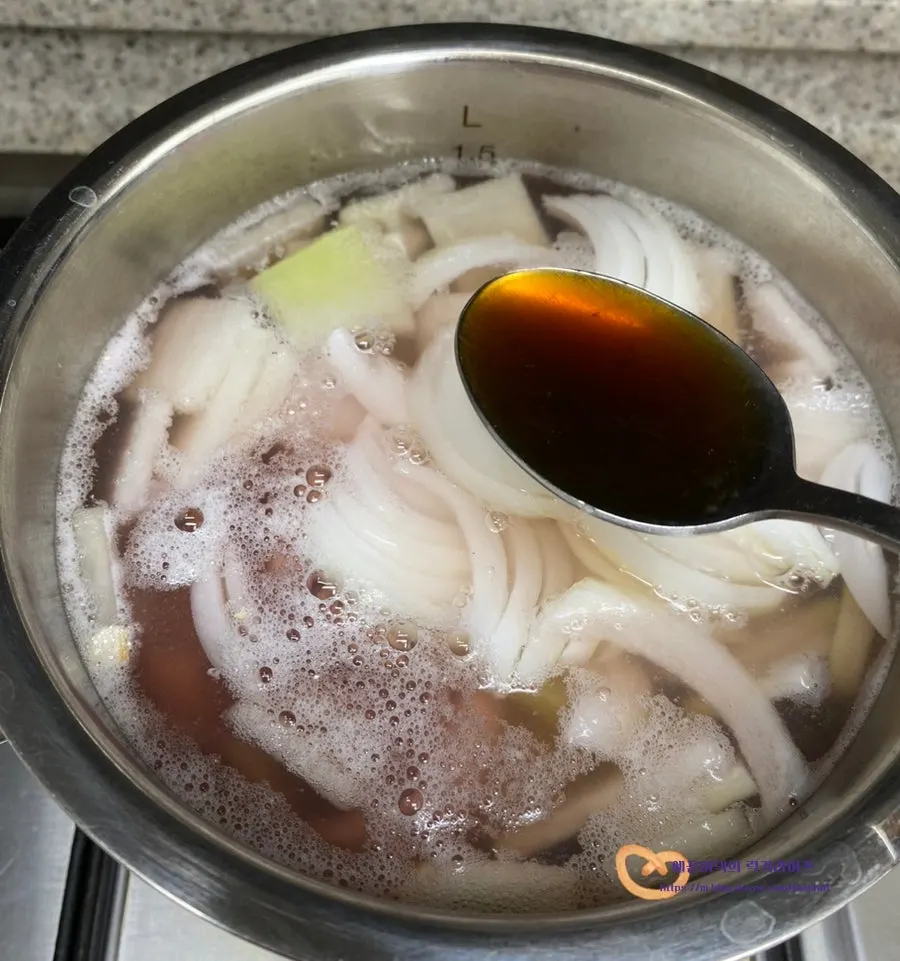 멸치다시마육수는 800ml를 준비했어요