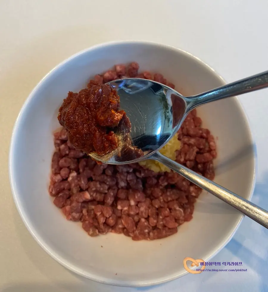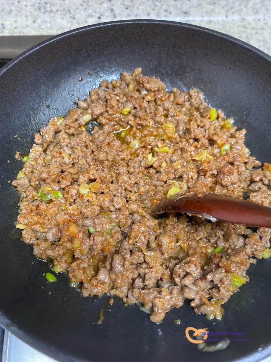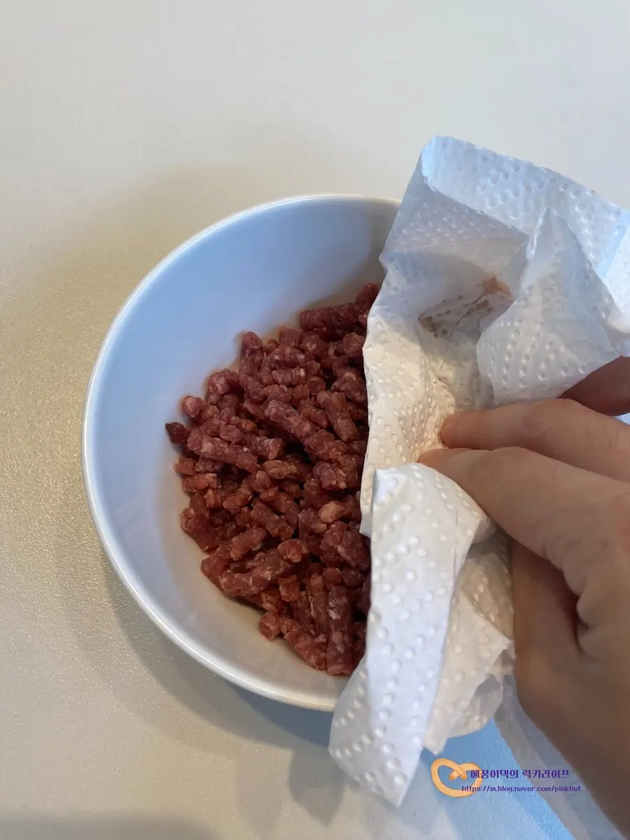 다진소고기는 키친타올로 톡톡 핏기를 제거하여