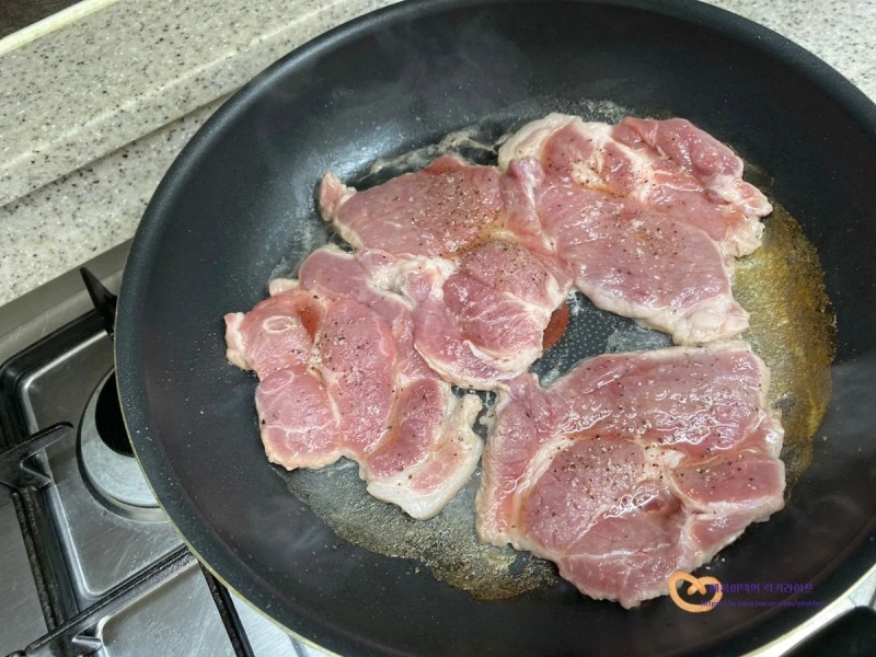 돼지고기는 일반적으로 구워먹는 두께의 구이용을 준비했습니다
