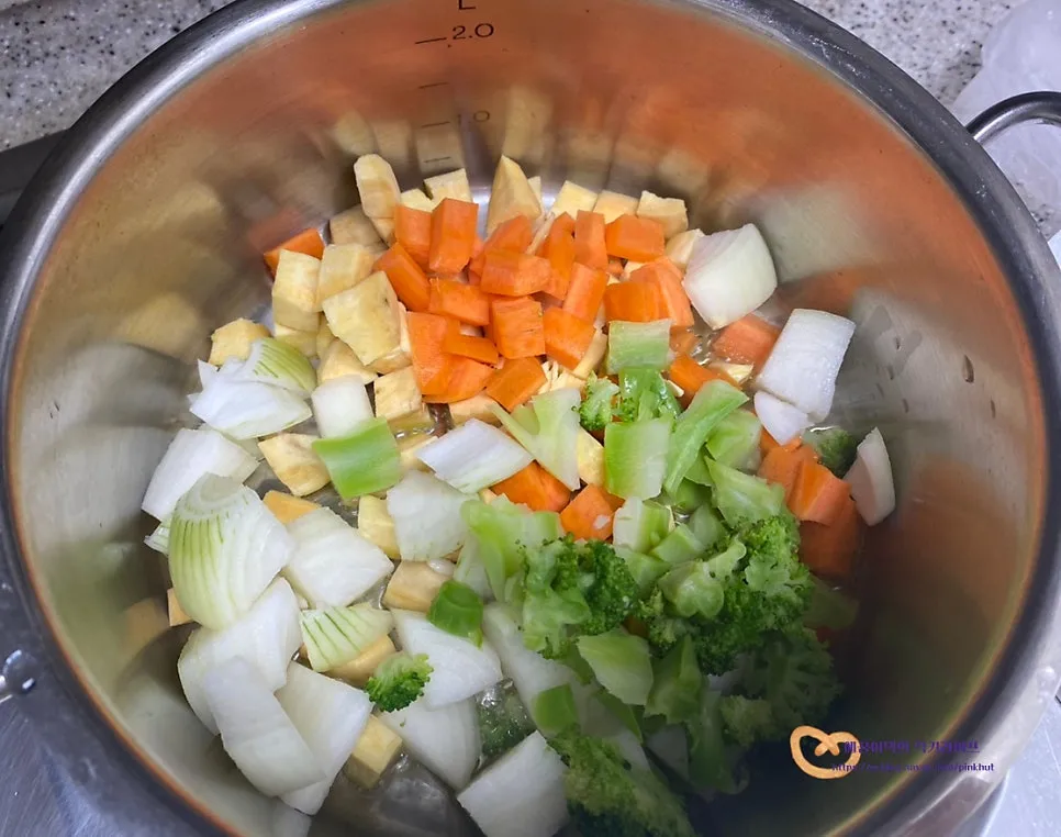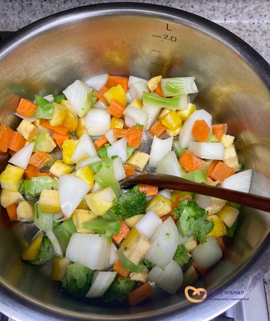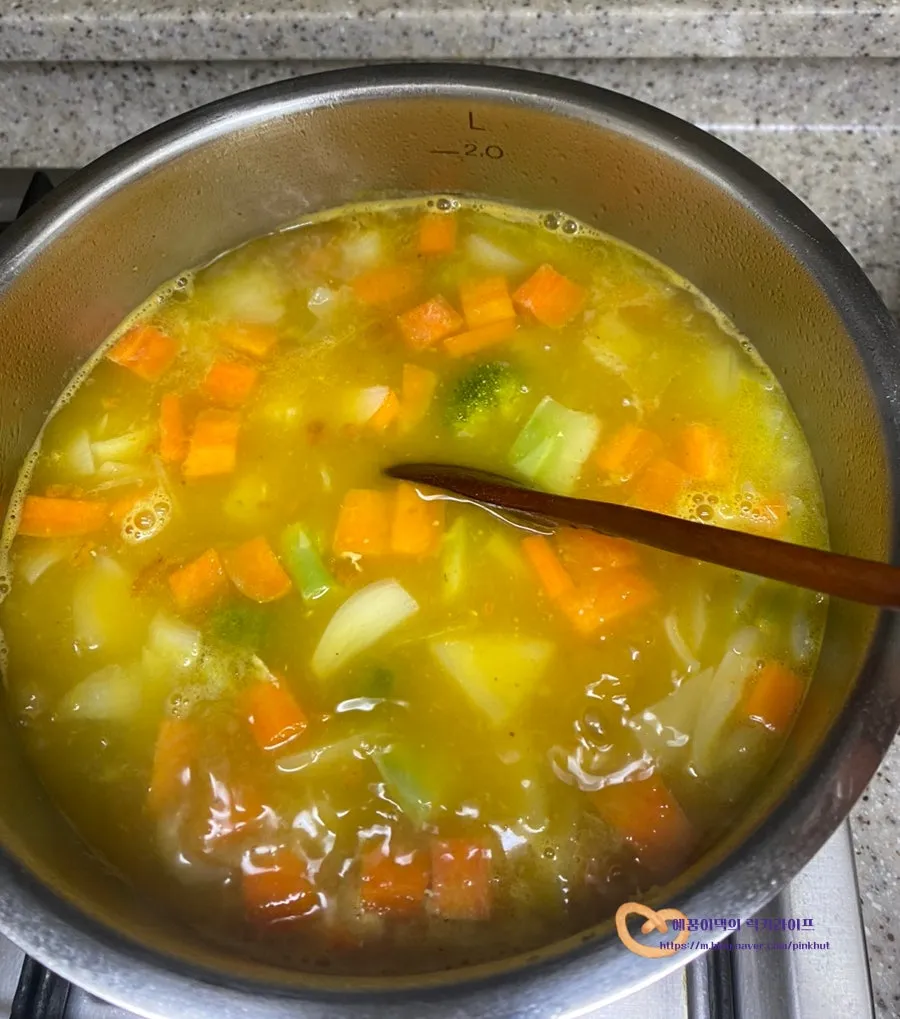 물을 넣고 재료들이 잘 익을 정도로 끓이다가