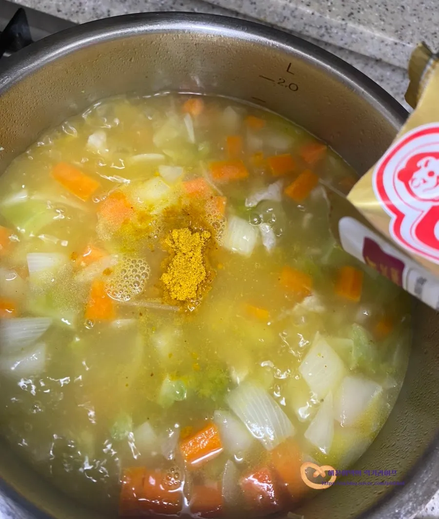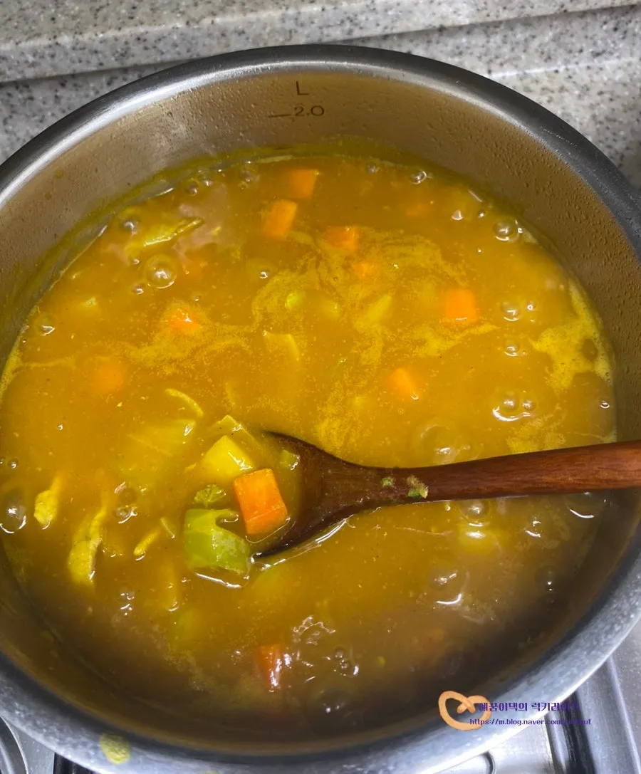 카레가루 넣고 뭉근하게 끓여주면 완성 :)