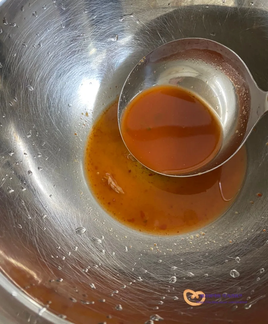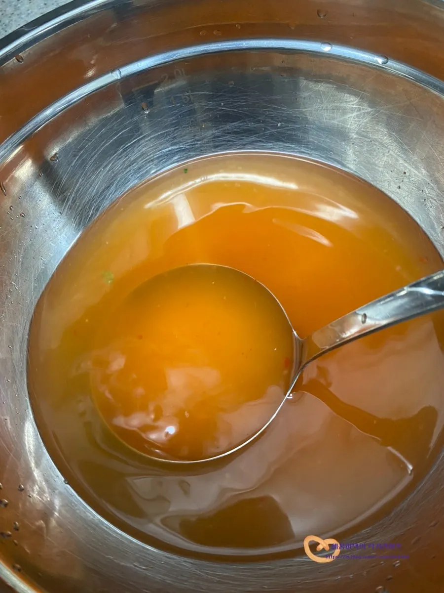 볼에 열무김치 국물 1국자 (50g)를 넣어주고
