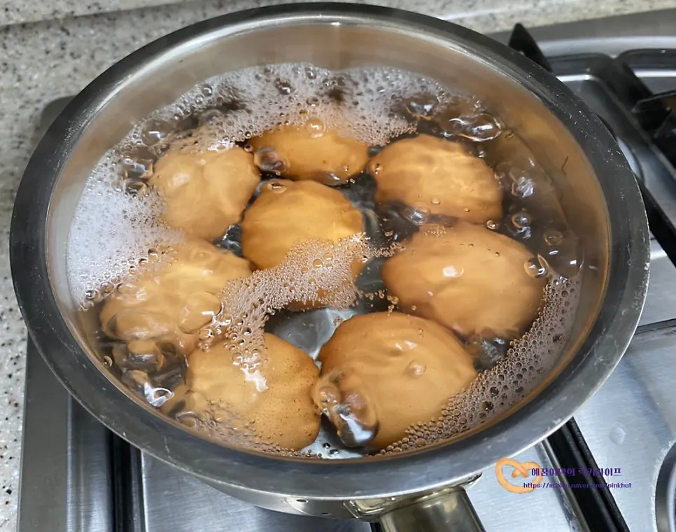 끓는물에 계란을 넣고