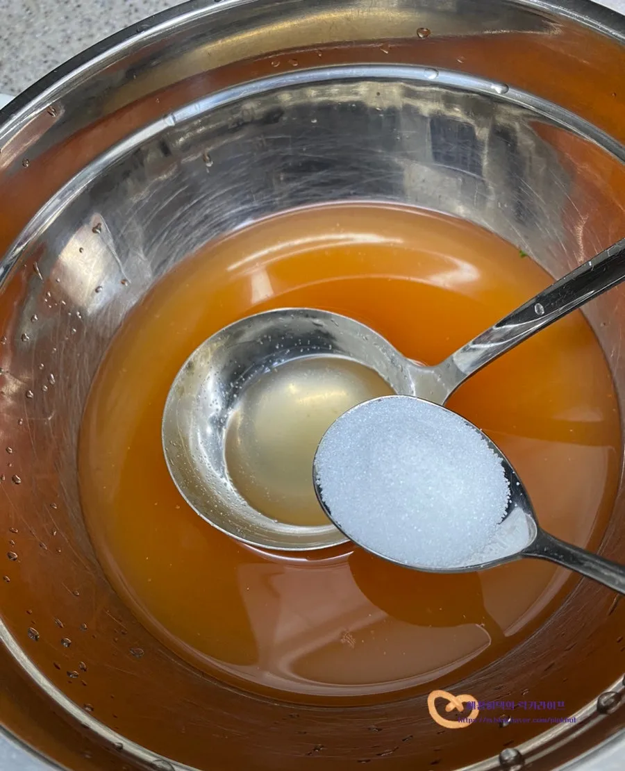 김치국물과 냉면육수, 설탕이 들어가는데요.
