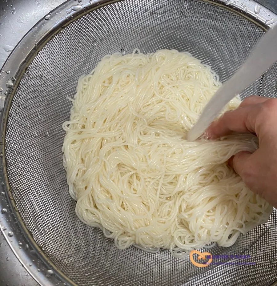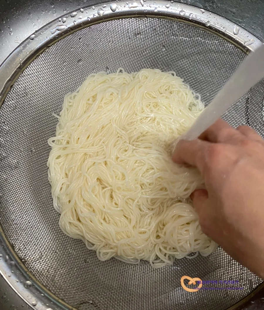 위의 사진처럼 찬물에 비벼가면서