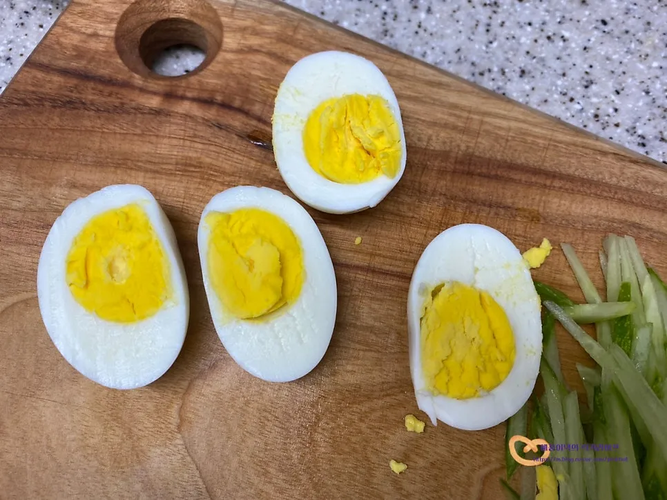 고명은 오이와 삶은계란을 준비했어요