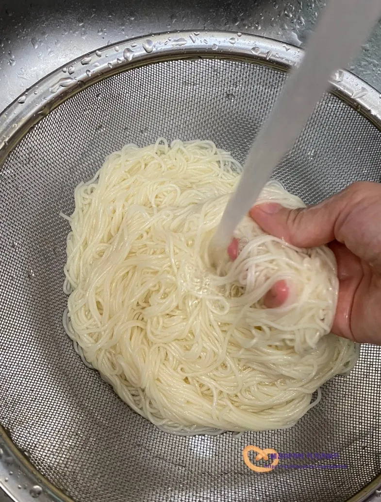 찬물에서 헹궈서 열기를 식혀주세요