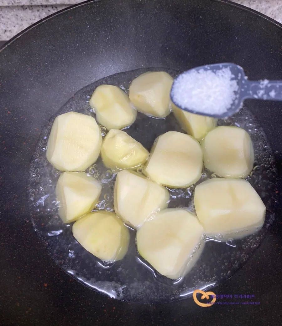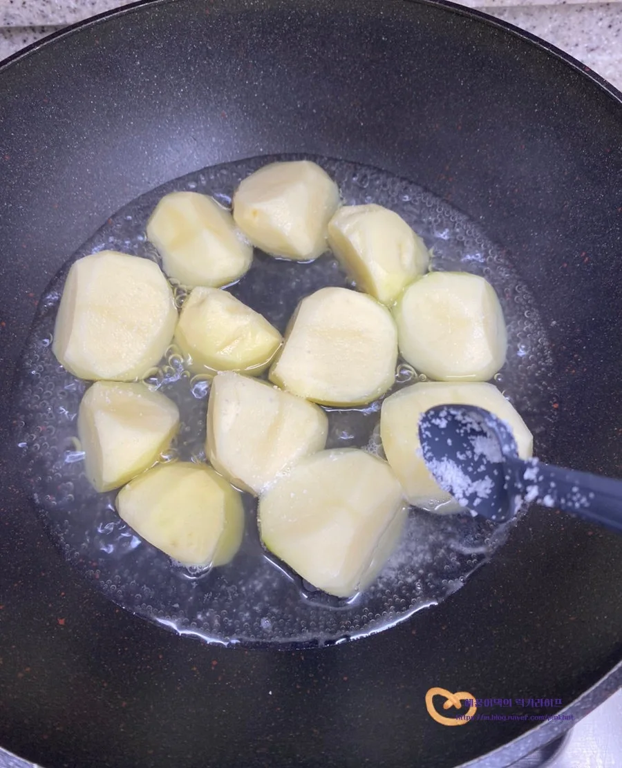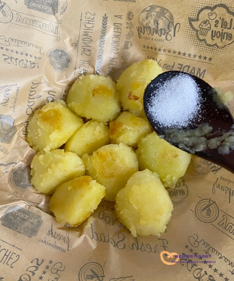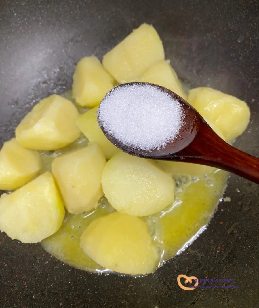 그다음 설탕 1T를 감자 위에 뿌리고