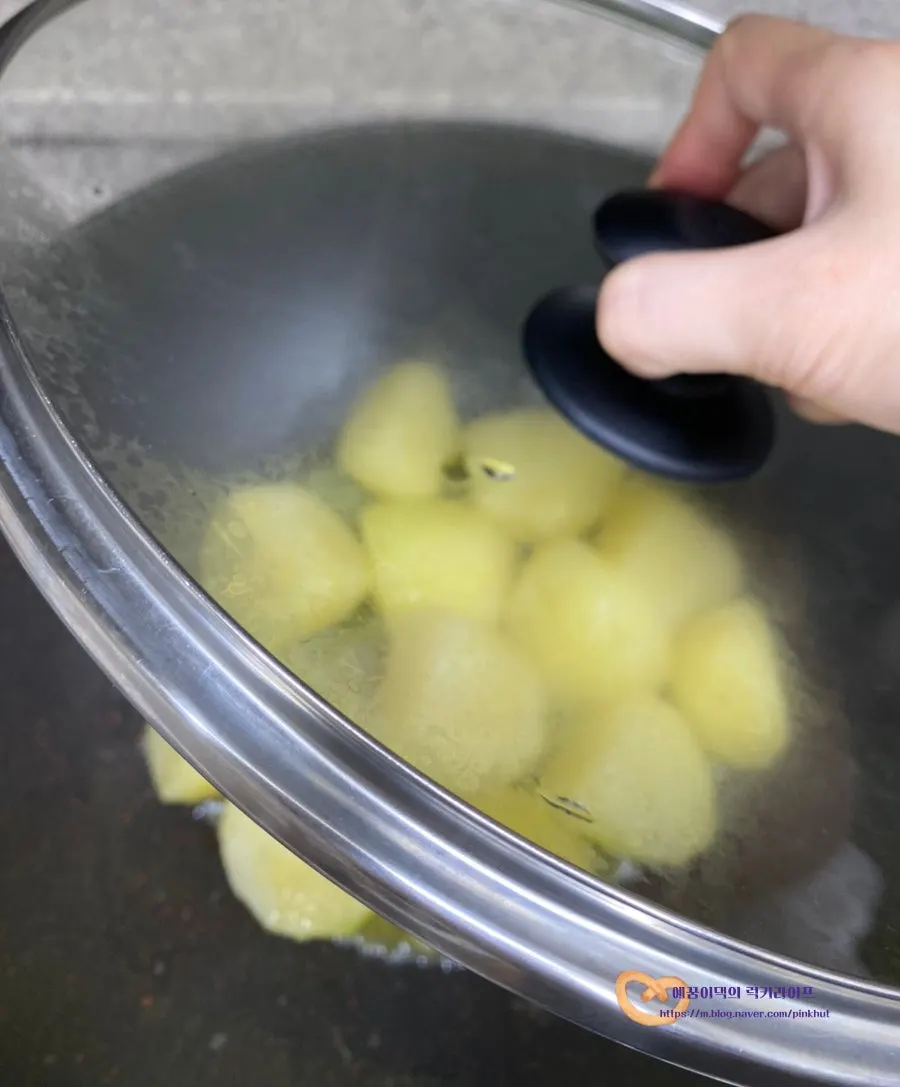 2. 팬에 감자, 물 넣고 삶기