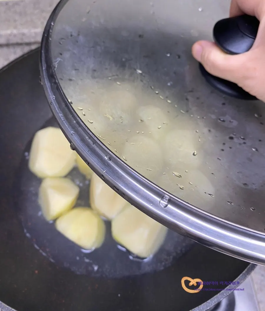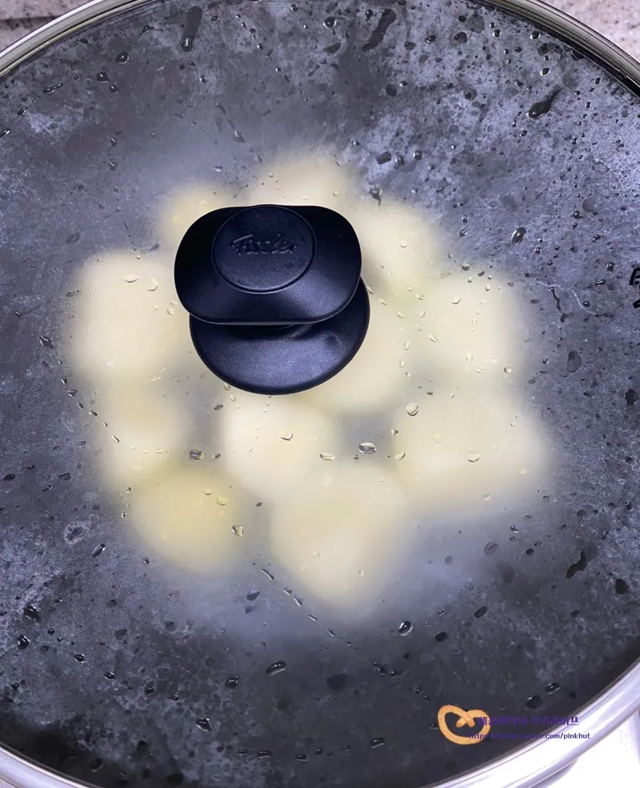뚜껑을 덮어주어야 속까지 부드럽게 익게 돼요