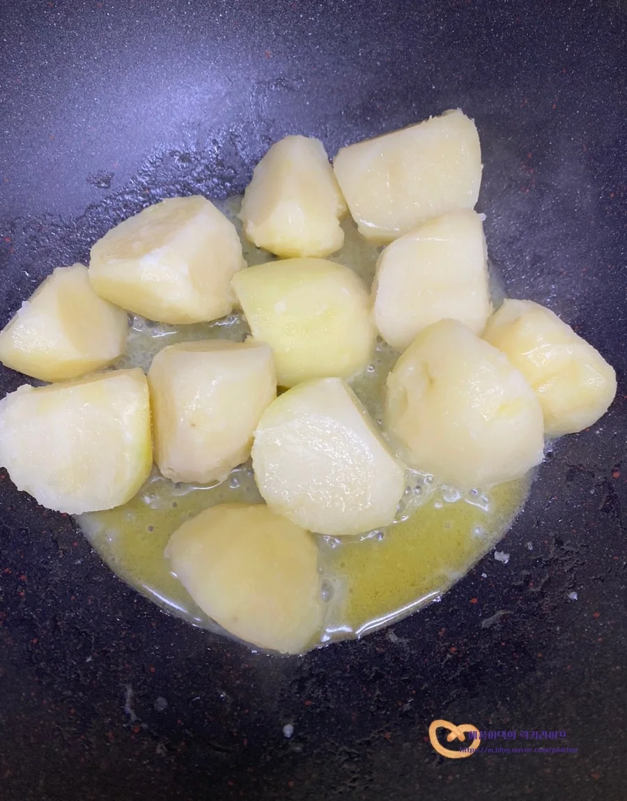 양을 반으로 줄여서 통감자 3개 분량으로