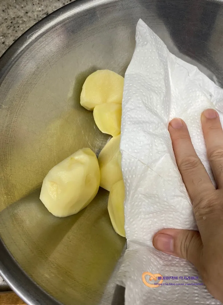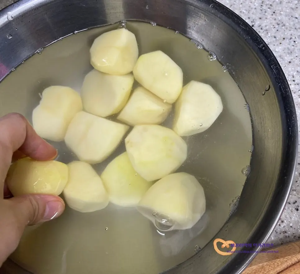 볼에 물과 감자를 담아서