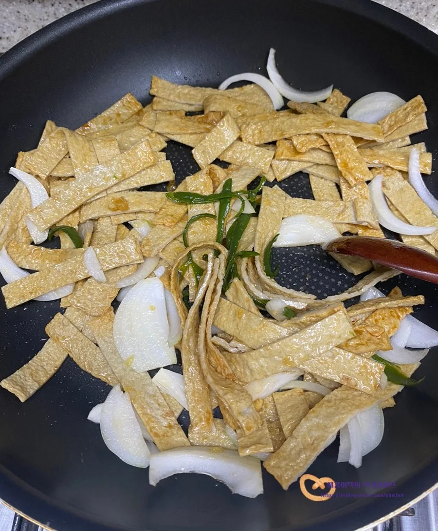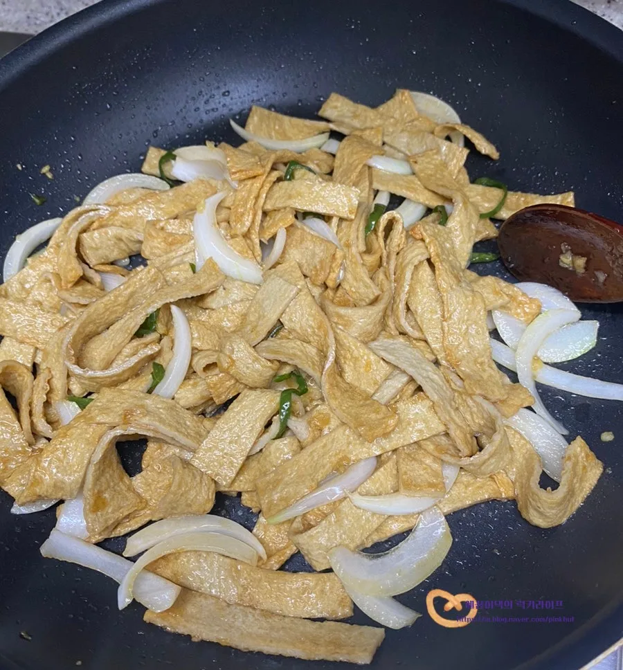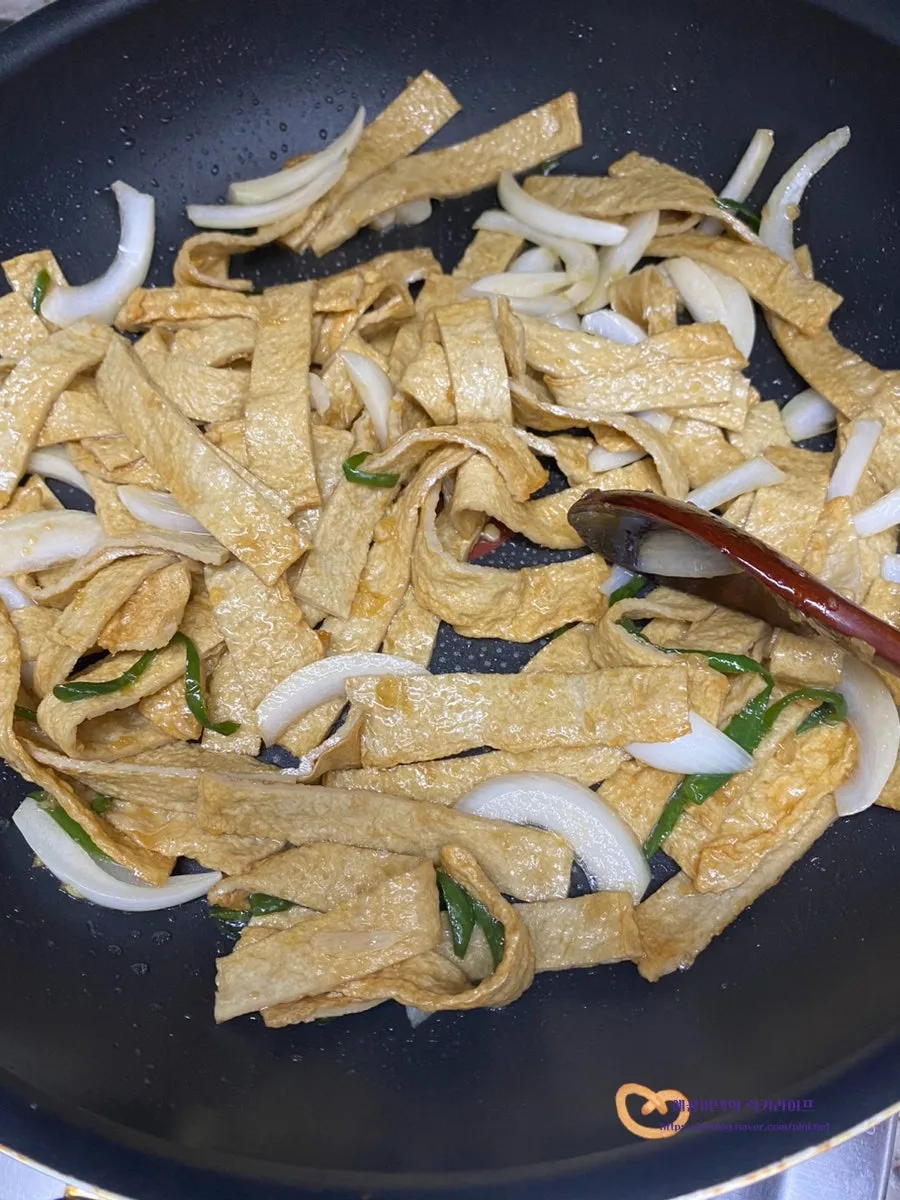 이때 양파와 풋고추를 같이 넣고 볶아주시면