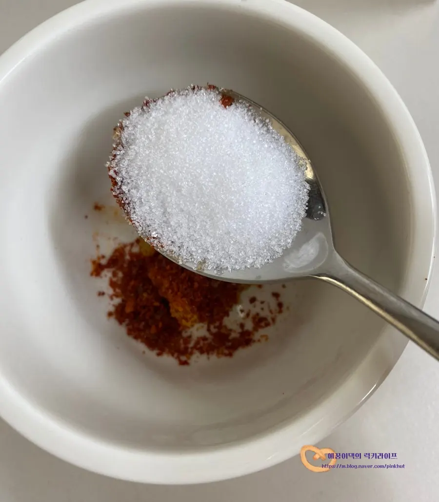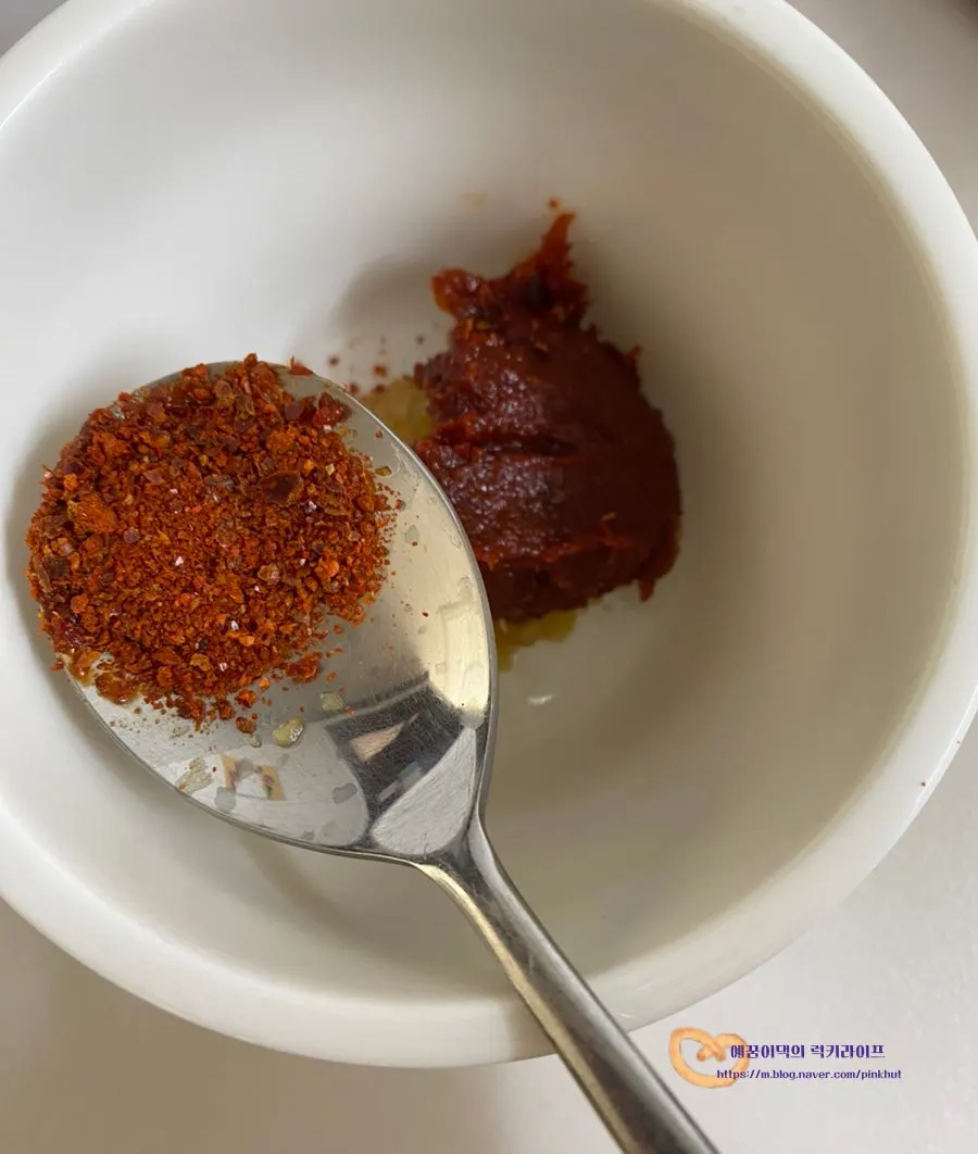 고춧가루 1T, 설탕 1T, 참치액 2T