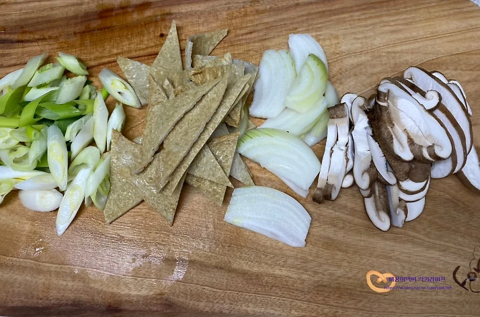 양파와 표고버섯은 먹기좋게 슬라이스해주고,