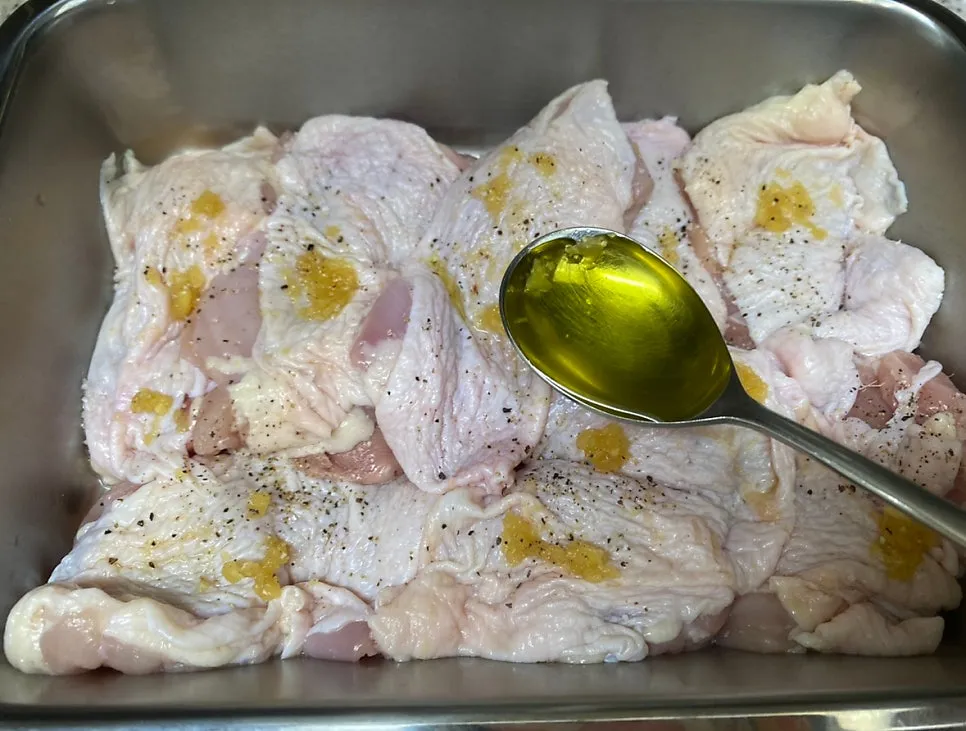 올리브오일과 소금, 다진마늘, 후춧가루를 넣고