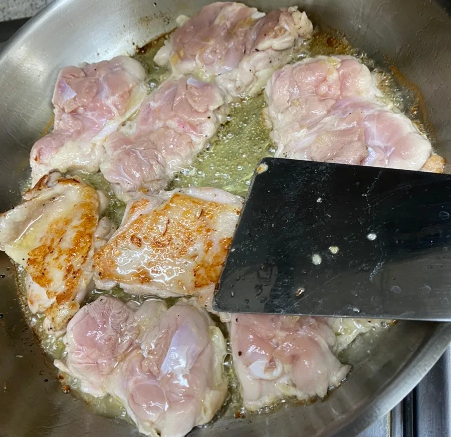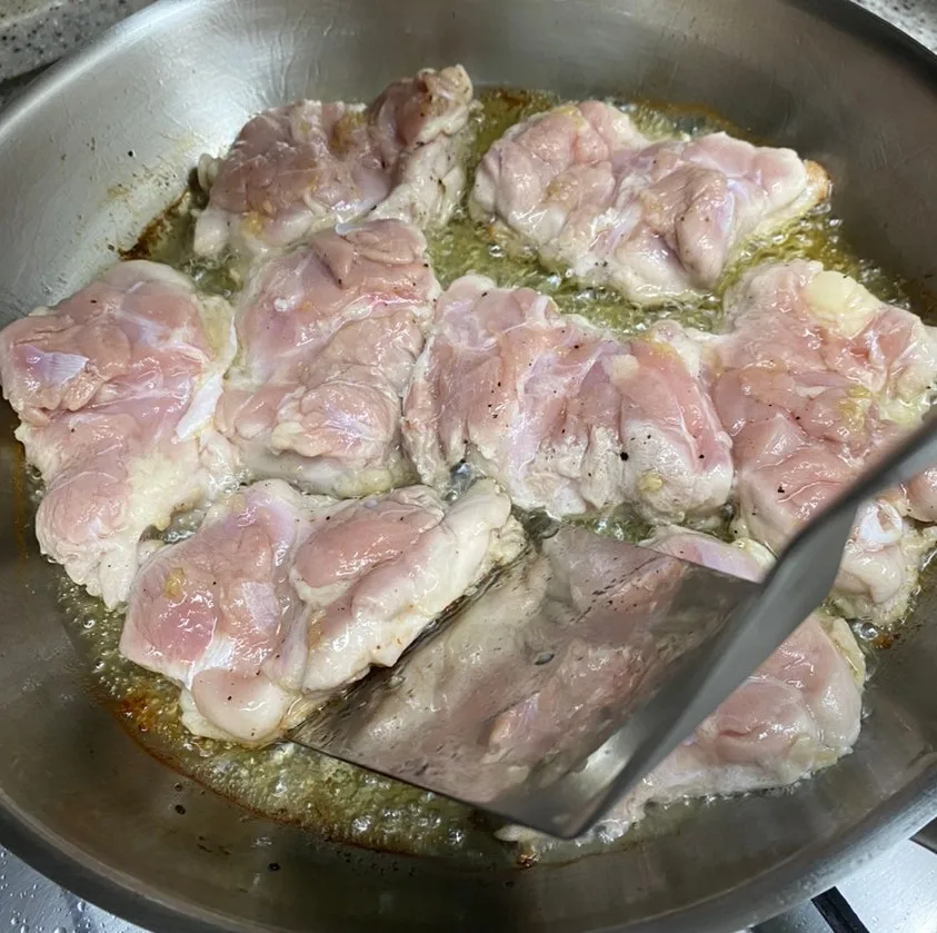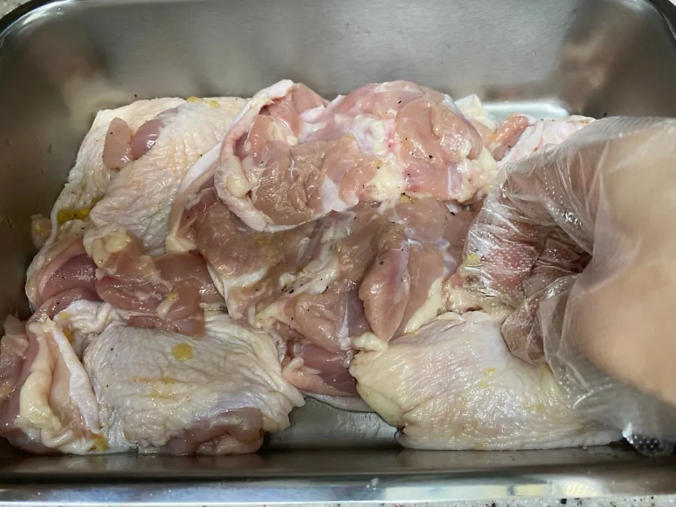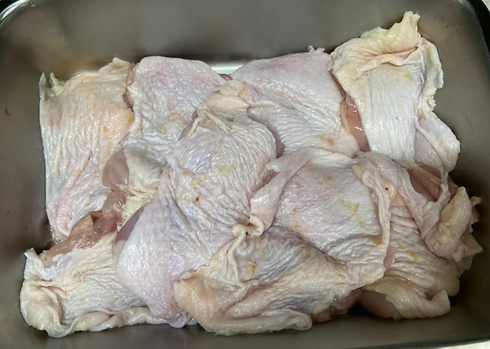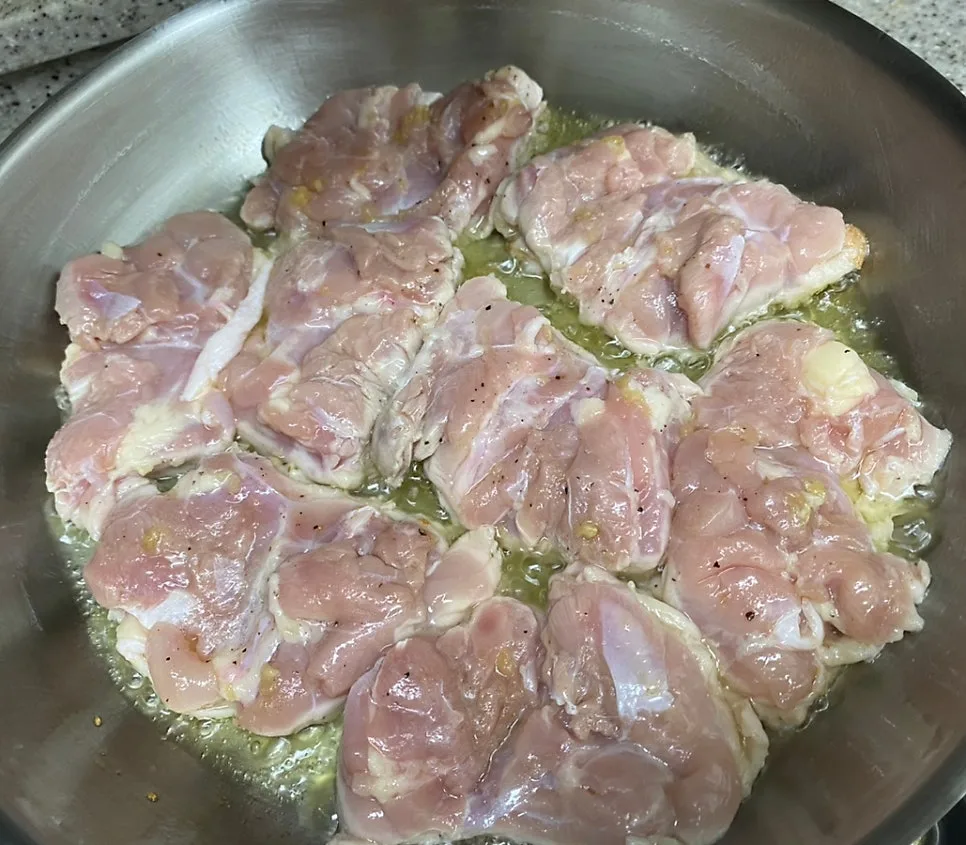 닭다리살을 껍질부분이 바닥에 가게 올려주세요