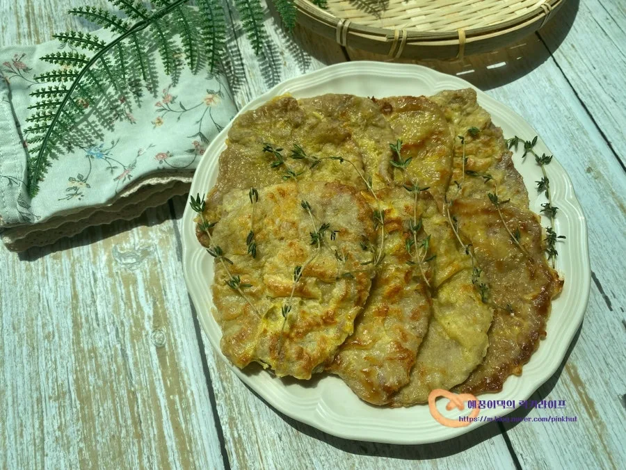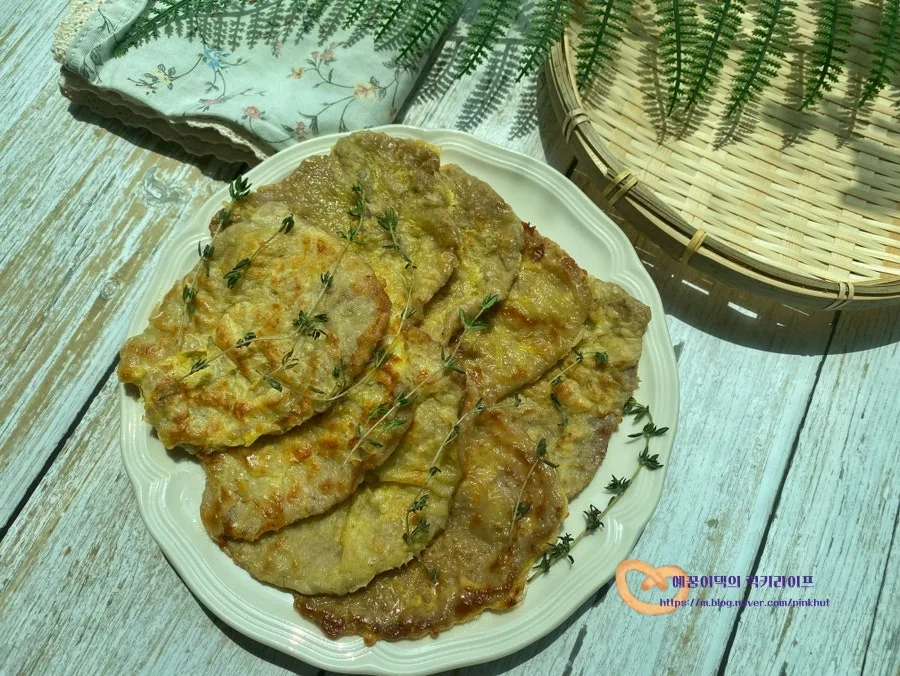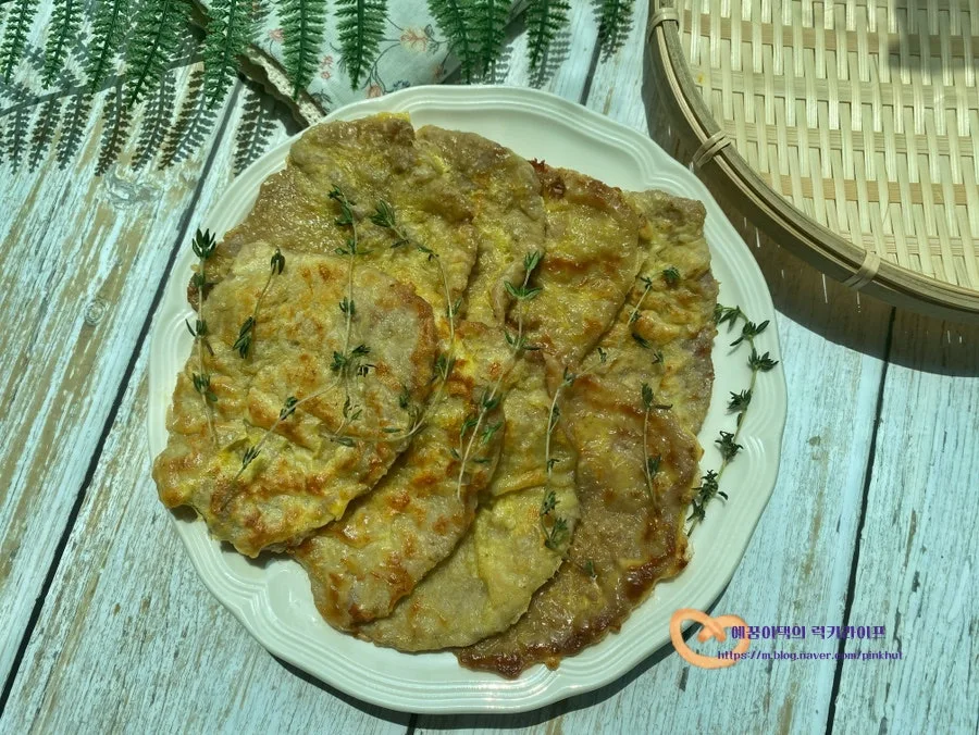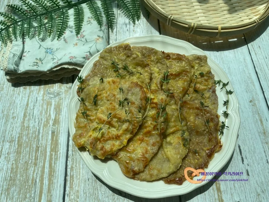 식용유 두른 팬에 노릇노릇 구운 전을 말해요