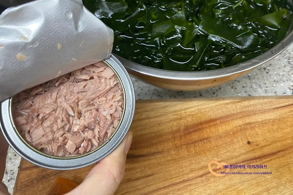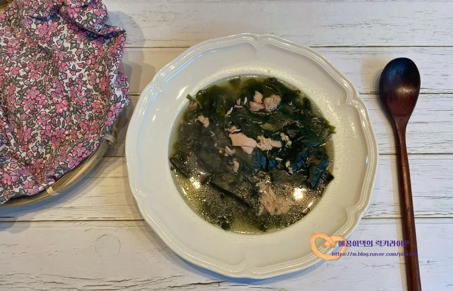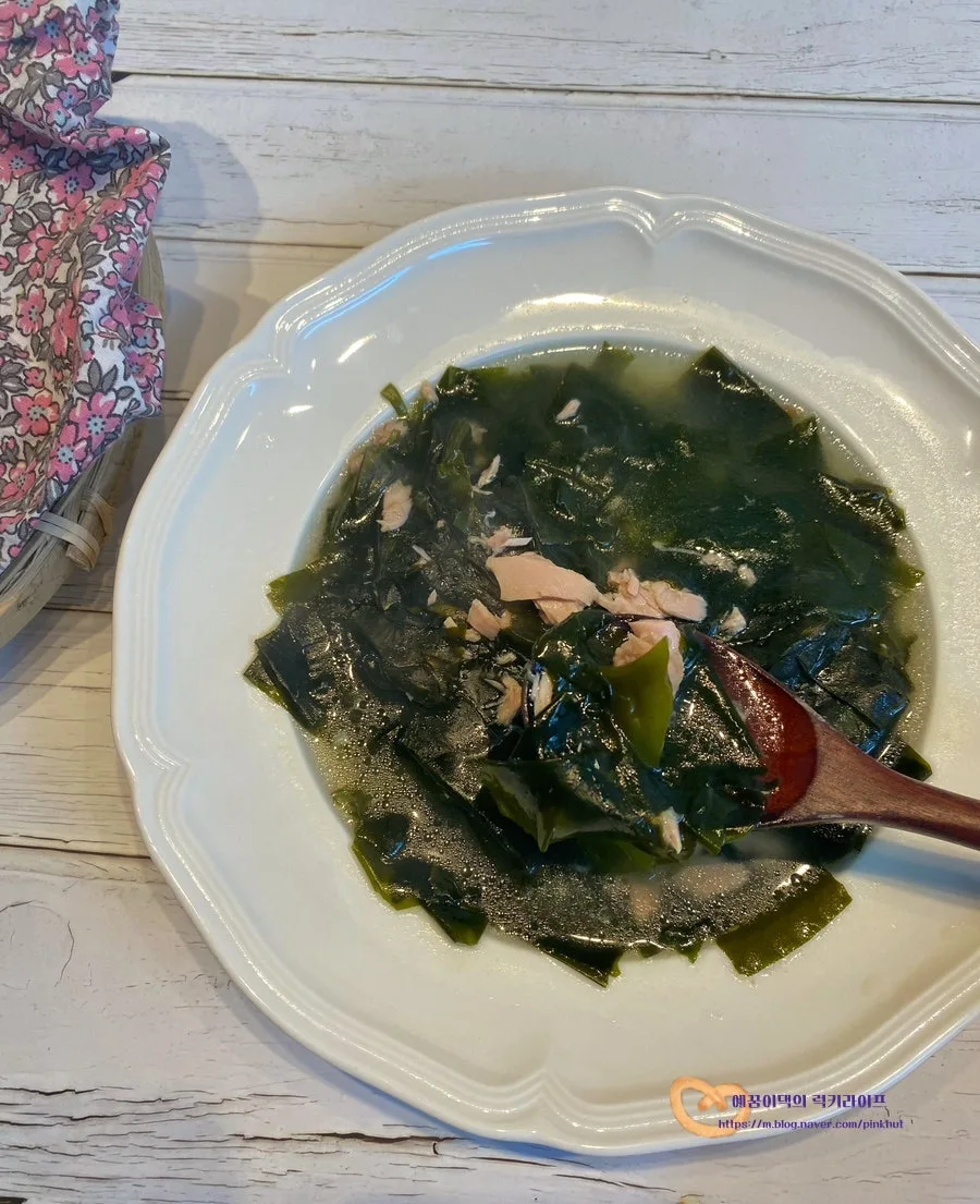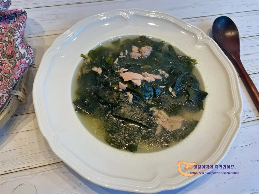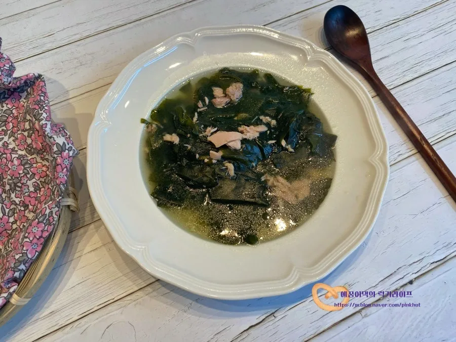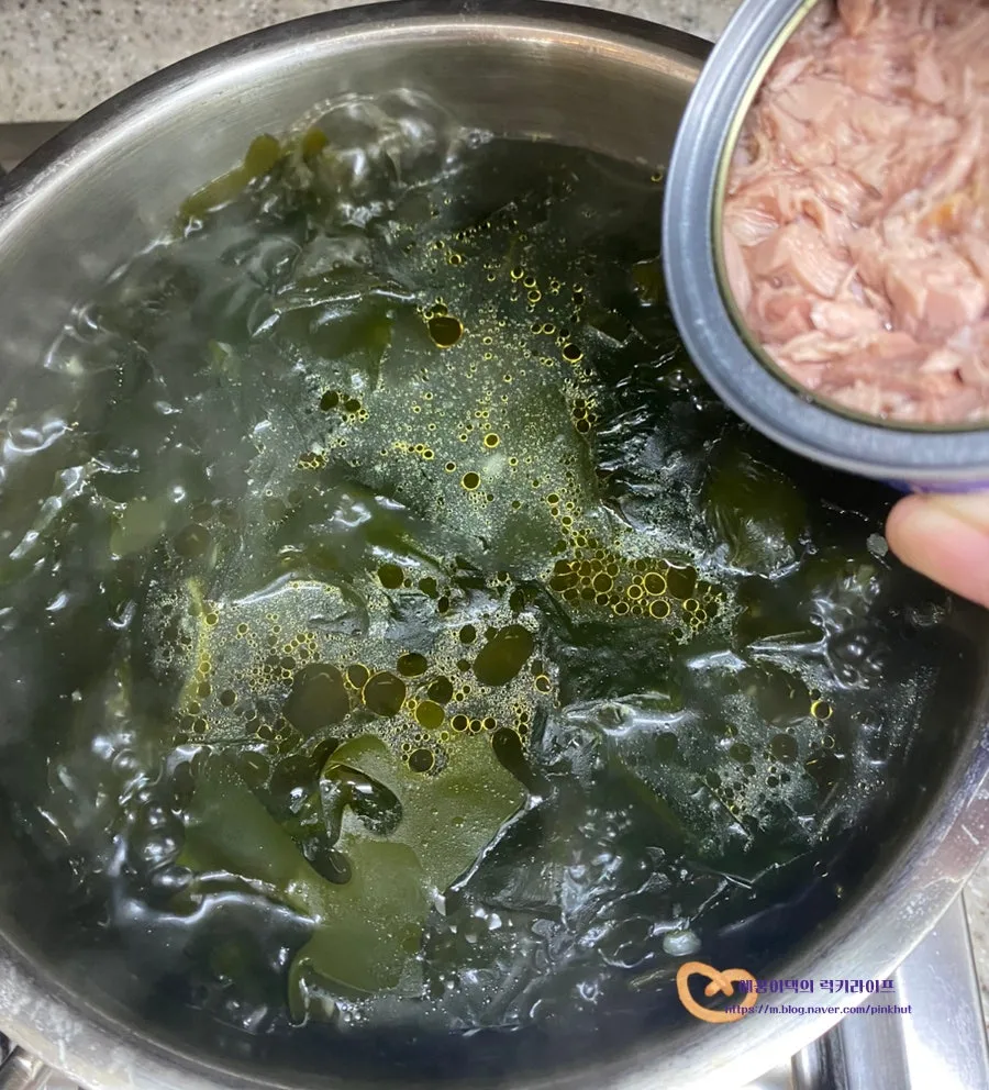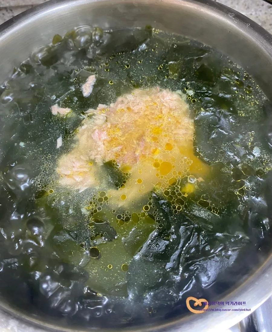 아침국 (+ 남은 참치캔 보관 자른미역 1인분양)